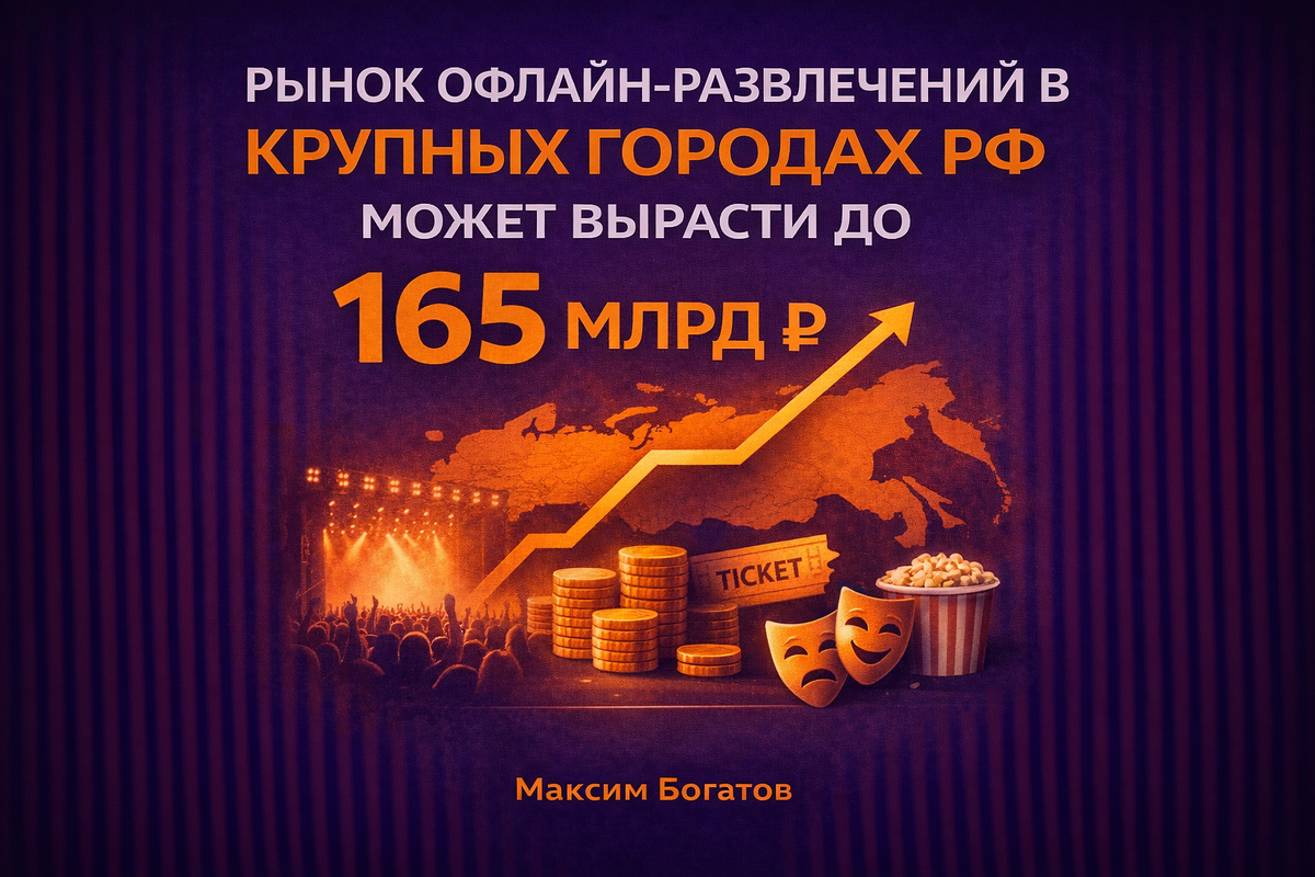 По прогнозу холдинга ON Медиа, в 2026 году рынок офлайн-мероприятий в крупнейших городах России достигнет 165 млрд рублей. Речь о концертах, спектаклях, выставках, музеях — всём, что требует живого присутствия. Кино и спорт в эту статистику не входят.