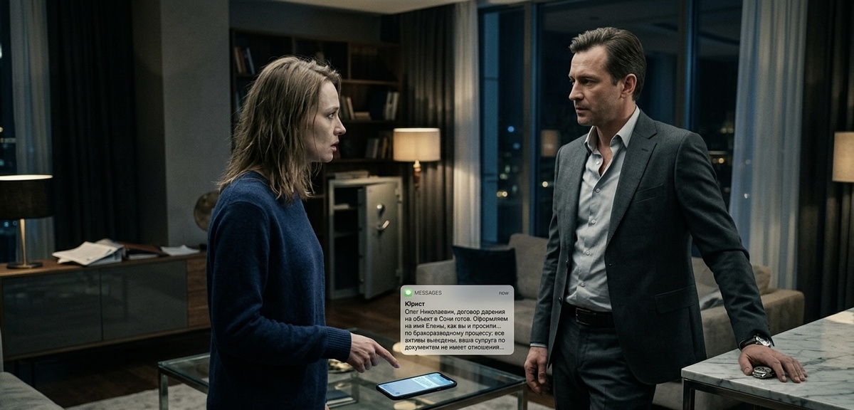 На экране всплыло сообщение от его юриста: «Олег Николаевич, договор дарения на объект в Сочи готов. Оформляем на имя Елены, как вы и просили. И по поводу бракоразводного процесса: все активы выведены, ваша супруга по документам не имеет отношения ни к одной доле в бизнесе. Можем начинать, когда будете готовы».
