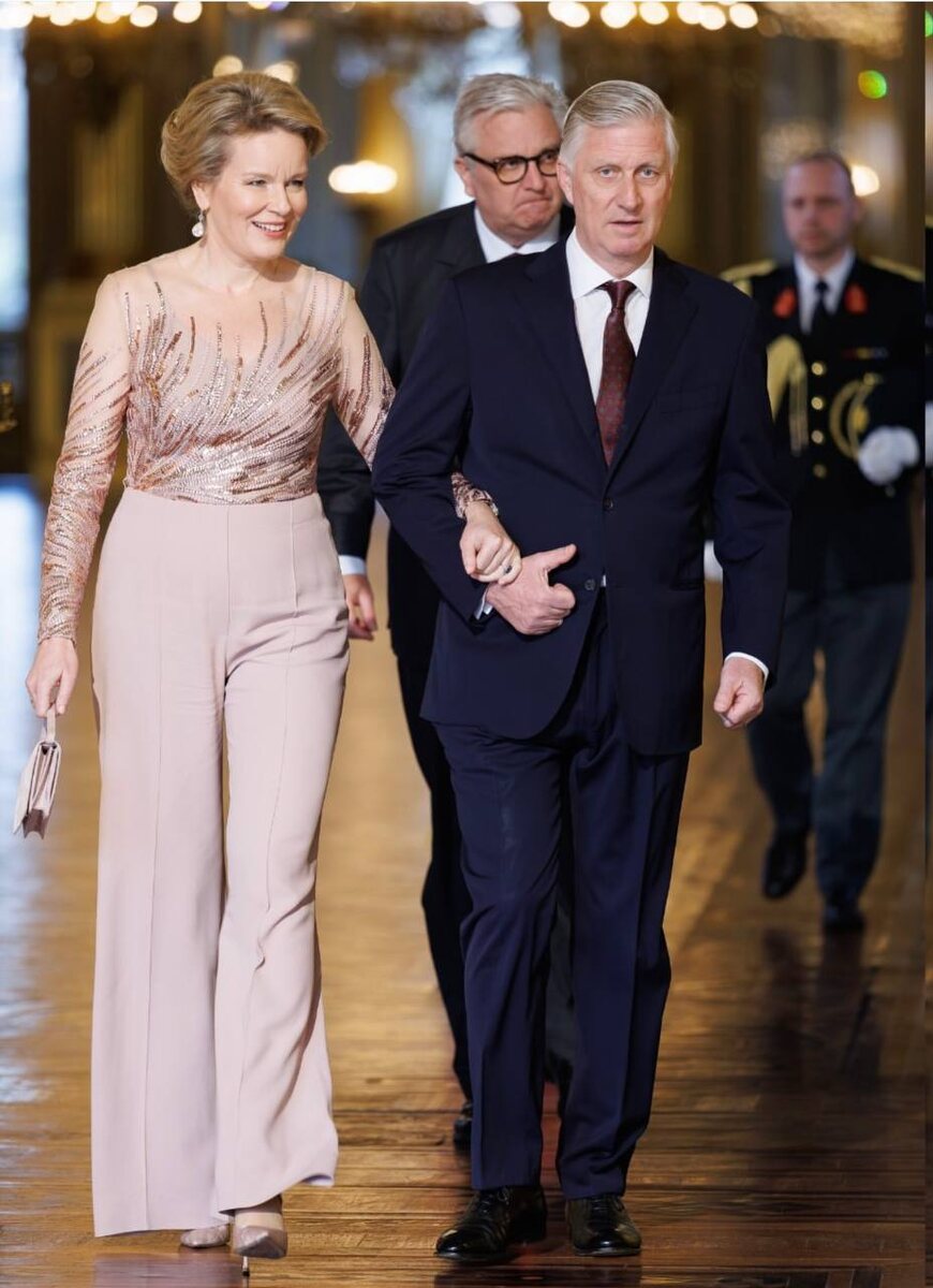 Король Бельгии Филипп и королева Матильда празднуют весну традиционным весенним концертом. Для мероприятия королева предпочла бежевый ансамбль.