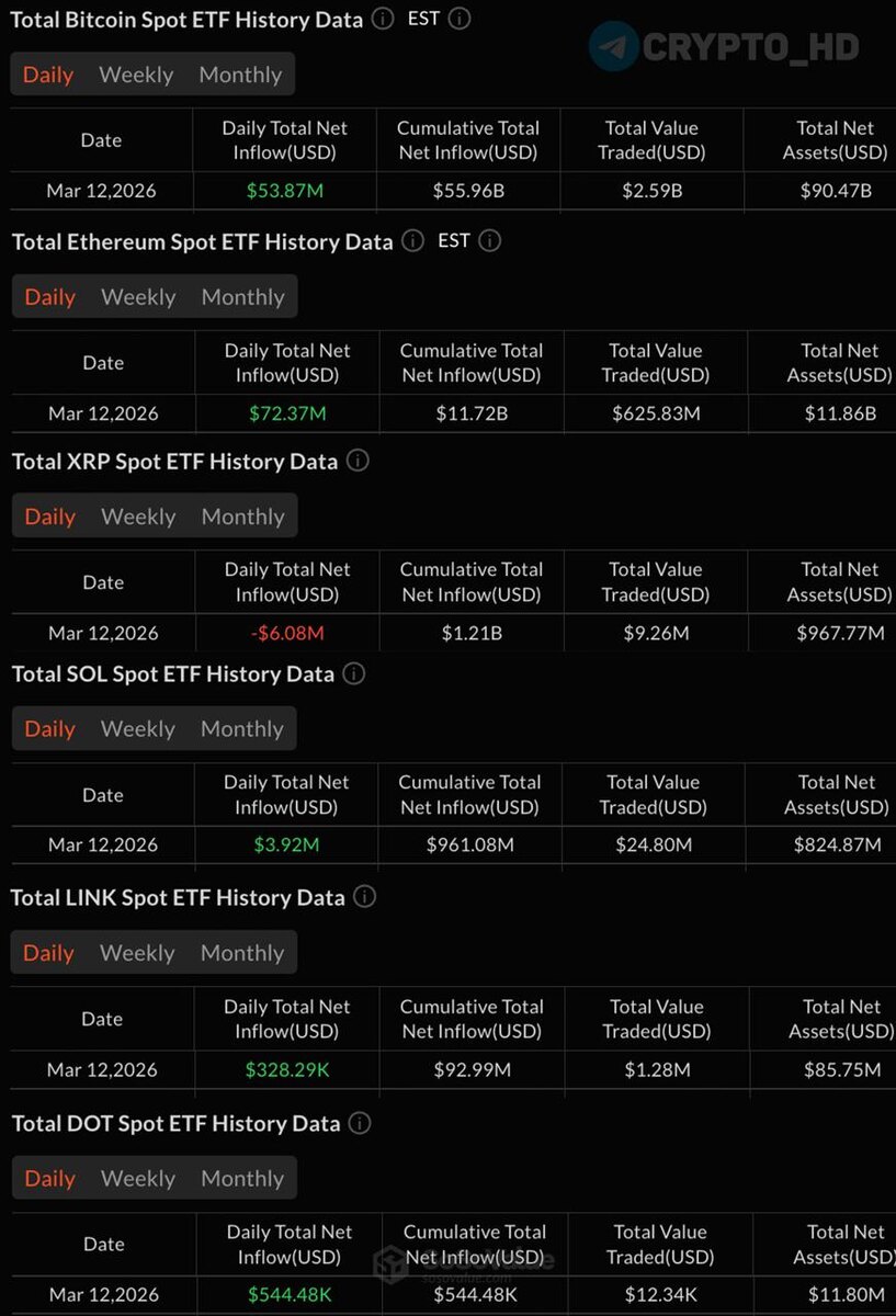 ↗️ SV: Финпотоки крипто-ETF за вчерашний день.
