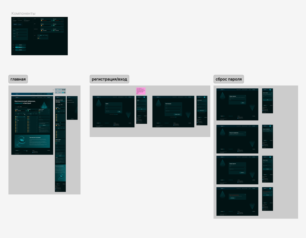 Сначала мы собрали референсы: смотрели разные сайты, сравнивали подачу, искали визуальный стиль, который одновременно ассоциируется с надёжностью, скоростью и современным fintech-подходом. Для обменника это критично: пользователь должен чувствовать доверие к сервису с первых секунд.