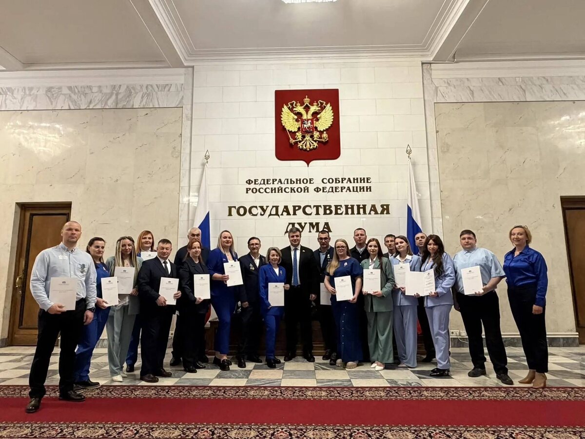 💙 Депутат Госдумы Александр Толмачёв вручил команде филиала благотворительного фонда «Благие дела» в Борисоглебске благодарственное письмо за активную общественную деятельность. Церемония награждения прошла в стенах российского парламента. Филиал фонда работает в нашем городе всего полтора года, но за это время команда успела запустить и реализовать десятки значимых инициатив. Волонтёры обеспечивают горячим питанием тех, кто оказался в сложной жизненной ситуации, поддерживают участников СВО и их семьи, оказывают адресную помощь ветеранам и людям с ограниченными возможностями здоровья. Также фонд регулярно выдаёт продовольственные наборы, помогает многодетным мамам и вовлекает подрастающее поколение в культуру добрых дел. — Это признание стало для нас важным стимулом продолжать работу и развивать благотворительные инициативы. Получение такого письма вдохновляет команду на новые достижения. Мы стремимся и впредь помогать тем, кто в этом нуждается, реализуя проекты, которые делают мир