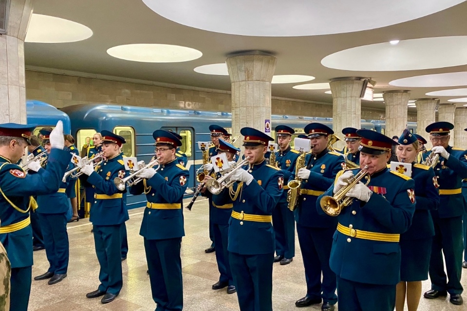 В Новосибирском метрополитене на линию вышел тематический вагон, посвящённый истории войск национальной гвардии Российской Федерации. Запуск приурочен к 10-й годовщине образования ведомства и 215-летию со дня создания внутренней стражи России. На открытии экспозиции мэр Новосибирска Максим Кудрявцев подчеркнул значимость события для города, отметив, что открытие такого вагона-музея – знак признания заслуг сотрудников Росгвардии. «Здесь мы увидим наших героев, которые с честью и доблестью выполняли поставленные боевые задачи в Афганистане, на Северном Кавказе, в других горячих точках. Мы вспомним о тех, кто ещё вчера защищал права и свободы граждан в Новосибирске, а сегодня с оружием в руках выполняет задачи на линии боевого соприкосновения», — отметил градоначальник. Командующий Сибирским округом войск нацгвардии генерал-полковник Николай Марков добавил, что экспозиция стала возможной благодаря поддержке метрополитена и городских властей. В вагоне представлены фотографии и материал