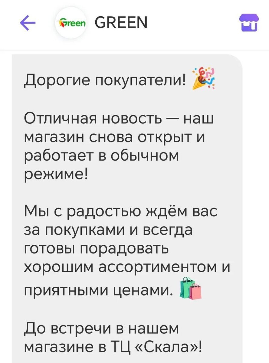 🛒 Green снова открыт после недавнего закрытия Супермаркет в ТЦ «Скала» возобновил работу спустя два дня - именно столько понадобилось на устранение выявленных нарушений. ✔️ Минскач • Подписаться