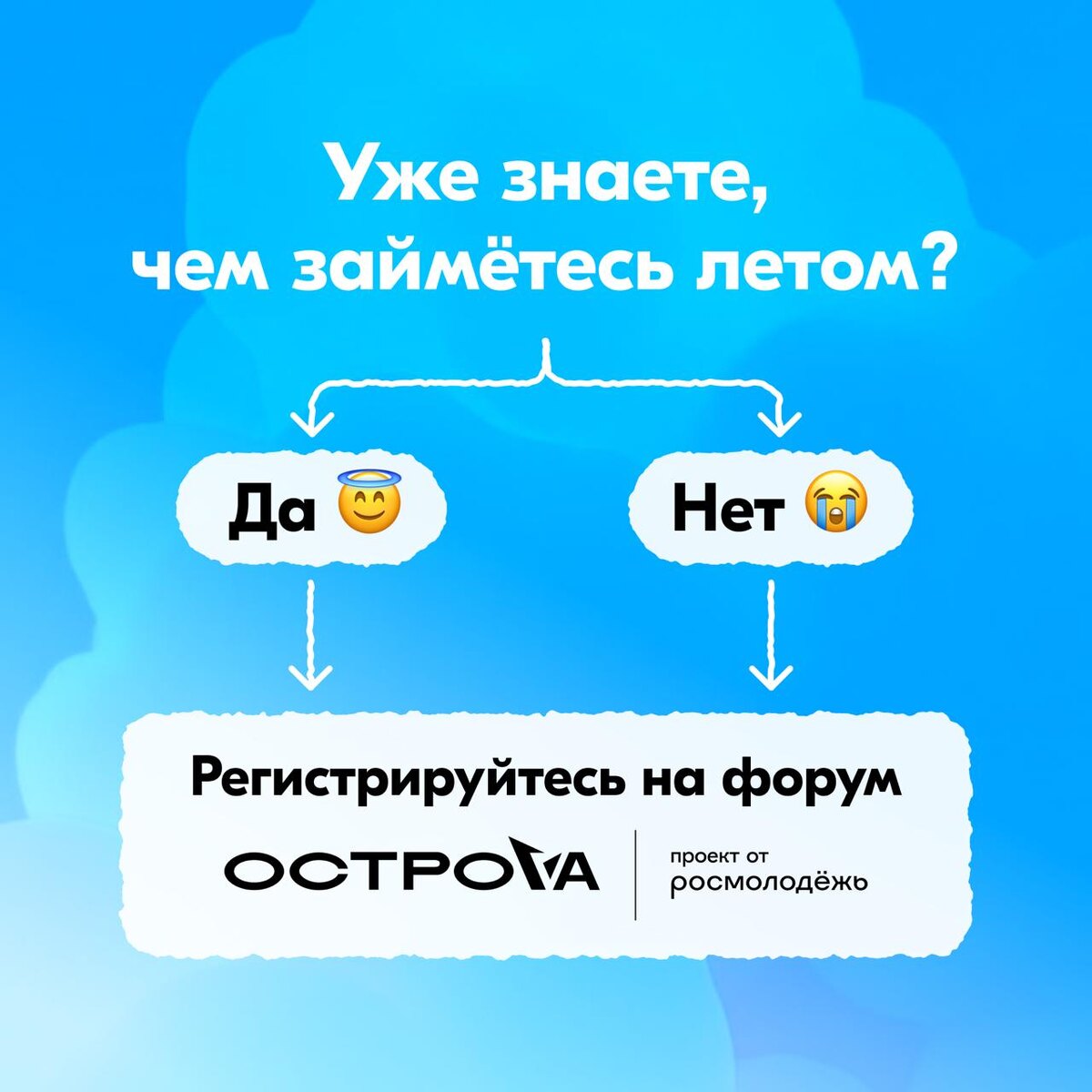 Пора! С 10 по 16 августа в Южно-Сахалинске пройдёт Всероссийский молодёжный форум «ОстроVа»! Здесь встретятся 600 талантливых ребят со всей страны, чтобы научиться новому, обменяться опытом, но самое главное – разработать инструменты для профессионального развития молодёжи. Основные направления: ➡️ наука ➡️ искусство ➡️ спорт ➡️ климат ➡️ экология ➡️ искусственный интеллект ➡️ информационные технологии ➡️ медицина ➡️ авиация ➡️ добыча полезных ископаемых Успейте подать заявку на участие до 11 мая🔥Это ваш шанс оказаться на ОстроVах! 🔔Госкоммол в ВК и МАХ
