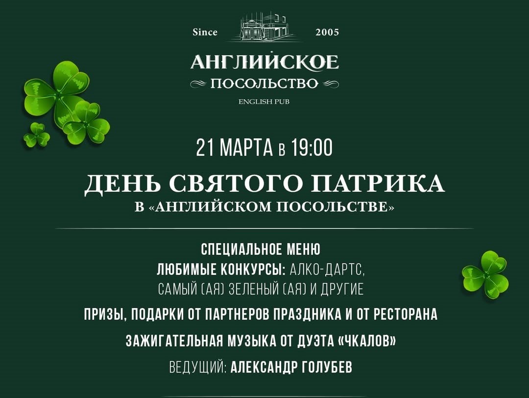 ☘️День Святого Патрика в пабе «Английское Посольство»