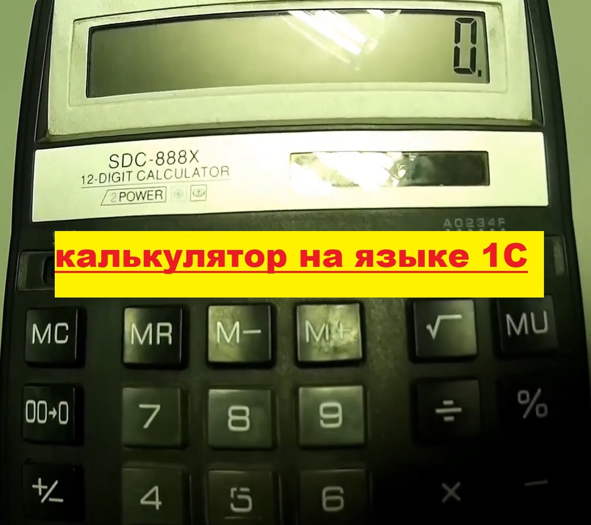 Калькулятор пишу во внутренней обработке. Код простой, но я его доработал немного. ввёл обработку ошибки при нажатии операций при незаполненном значении. Создаётся два реквизита. Один реквизит обработки: "Буфер" тип Число. Второй реквизит формы: "Буфер", тип Строка. Создаются команды которым назначаются номера кнопок и функции команд Код пишется в модуле формы обработки Код свой сократил что бы в скриншот вместился. Убрал команды умножения, деления... Можете их дописать сами. Они уже прописаны в функции "Вычислить (Команда)" Описал без подробностей.