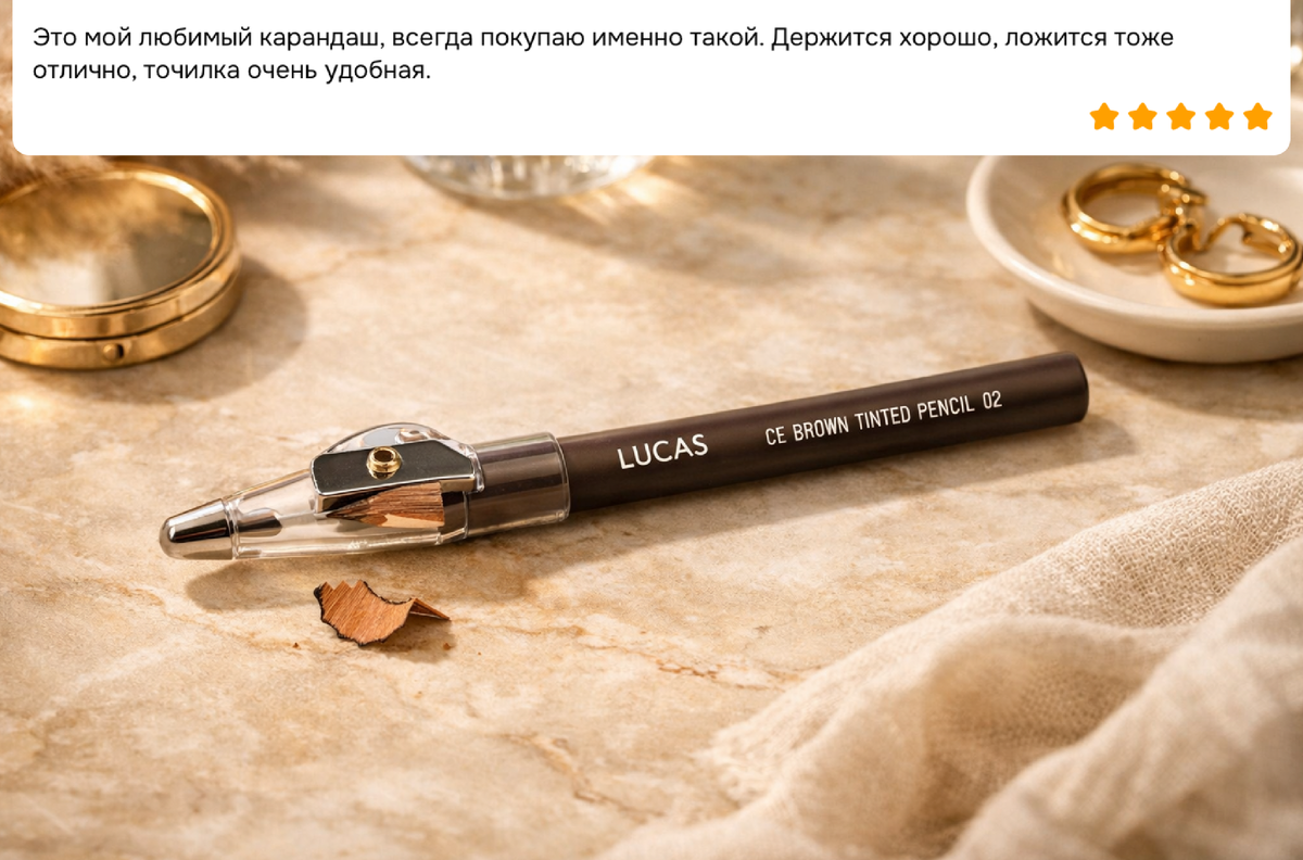 Восковой карандаш для бровей Lucas Cosmetics CC Brow Wax Fixator - как раз из таких. 💬 «Это мой любимый карандаш, всегда покупаю именно такой. Держится хорошо, ложится тоже отлично, точилка очень удобная» - отзыв покупателя, который точно описывает впечатление от этого товара. Это профессиональный восковой карандаш для бровей, который помогает аккуратно уложить волоски, скорректировать форму и добавить бровям естественный объём. Карандаш мягко прокрашивает волоски и слегка кожу, благодаря чему брови выглядят более густыми и выразительными, но при этом остаются натуральными. Пчелиный воск