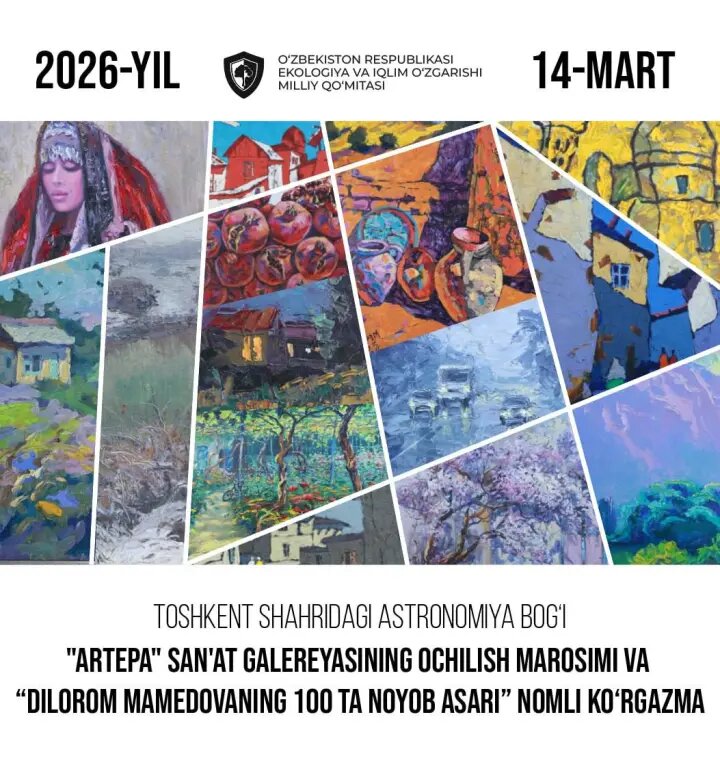 В пресс-службе Национального комитета по экологии и изменению климата Республики Узбекистан сообщили, что 14 марта в 14:00 в парке Астрономии при Green University в Ташкенте состоится церемония открытия художественной галереи "ArTepa", а также выставки "100 уникальных произведений Дилором Мамедовой". Организатором мероприятия выступает Национальный комитет по экологии и изменению климата.