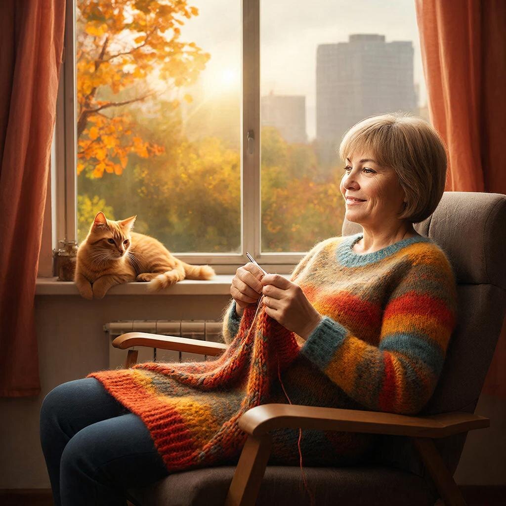 Я достала этот пакет. Клубочки пахли нафталином и молодостью. Села на диван, набрала петли — и руки вспомнили. Сами. Без моей головы, без инструкций. Пальцы забегали, застучали, и через час у меня была готова смешная шапка с ушами, как у совы. Кот смотрел на неё с подозрением, но я была счастлива.
