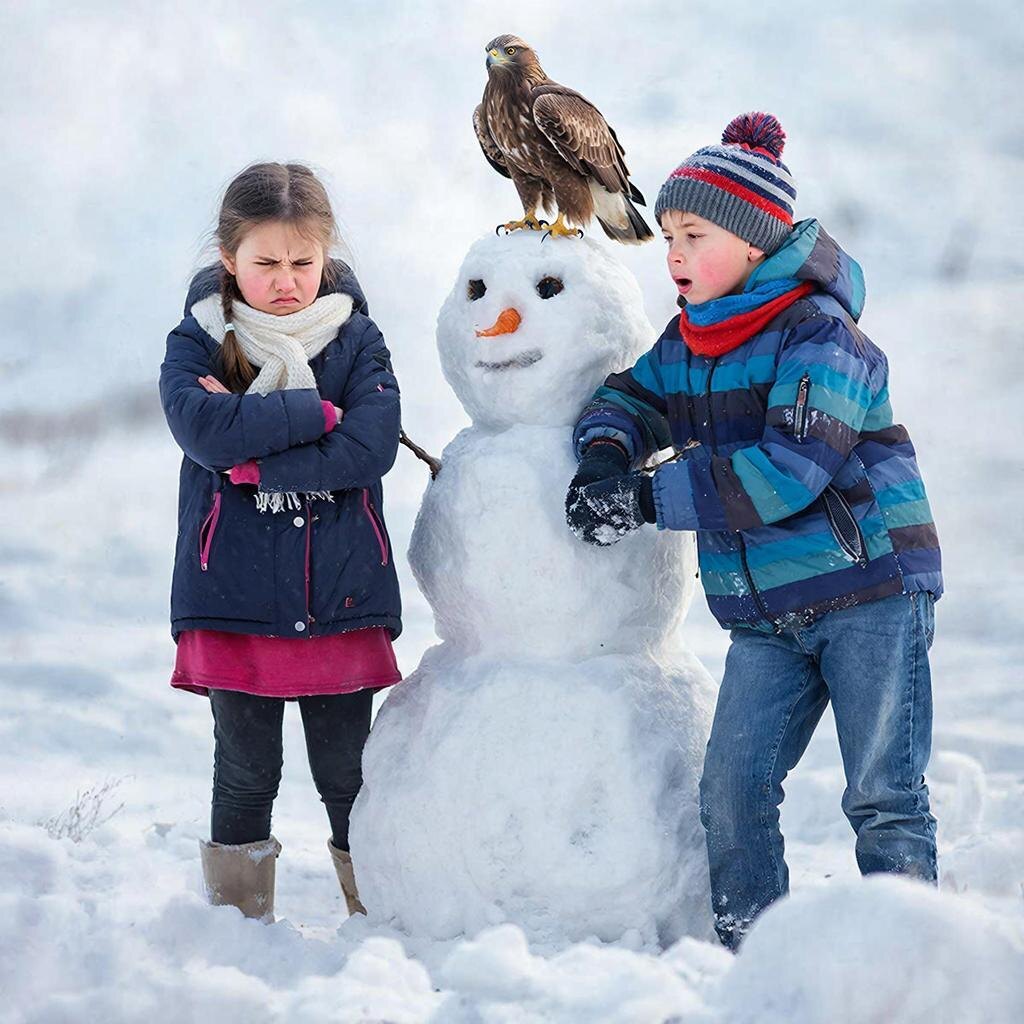 - Как ты думаешь, почему орёл прилетел именно к Сане и Ане? Зачем он сел на снеговика?