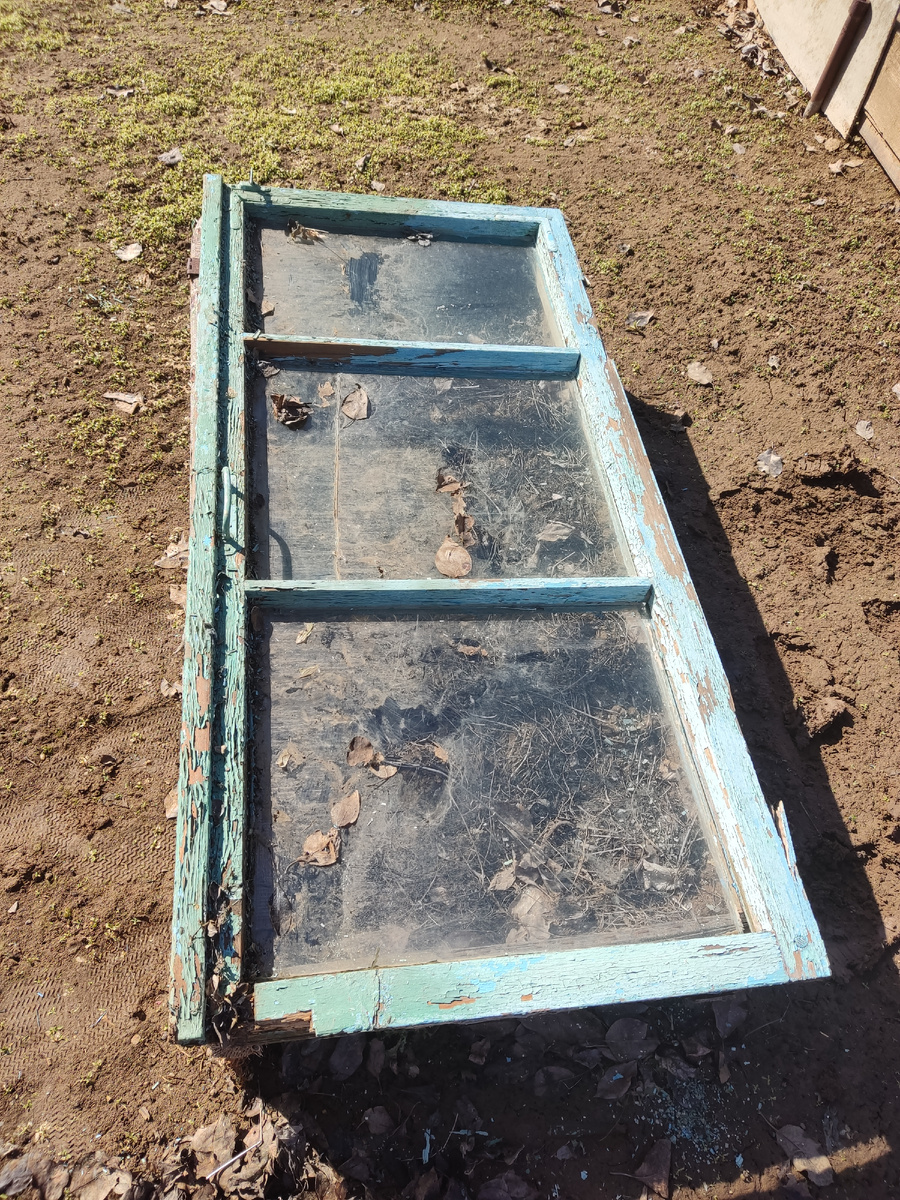 Накрыла грядку из дивана старой оконной рамой. Буду сажать там рассаду, пусть пока прогревается земля
