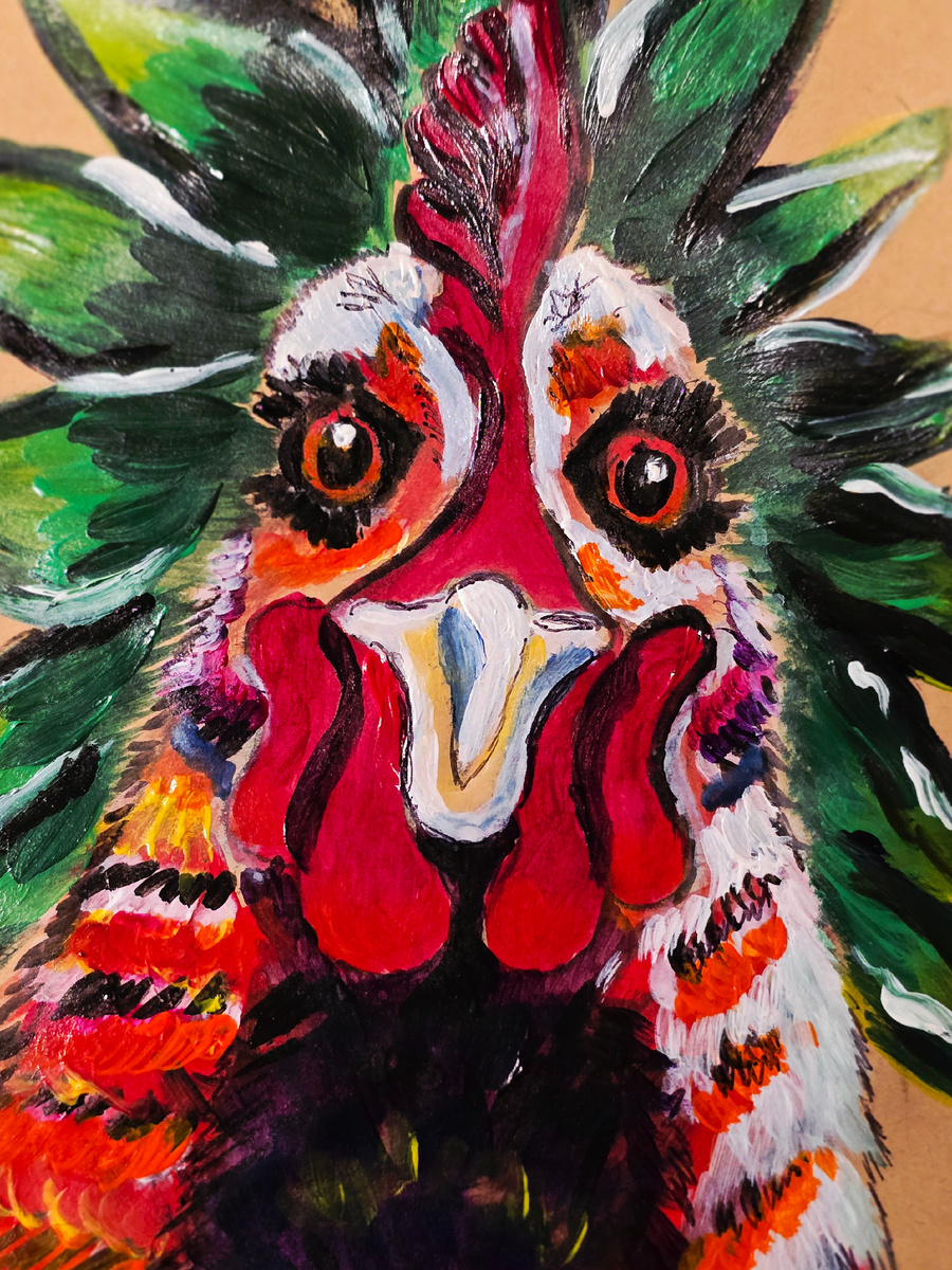 Говорят, с той поры в деревне перестали ссориться. Люди стали добрее, жадность ушла, зависть поутихла. Только иногда, на закате, у старой яблони можно увидеть рыжую курицу с белым пером. Она сидит на ветке, смотрит на избу грустными глазами и тихо кудахчет — будто зовёт кого-то.
