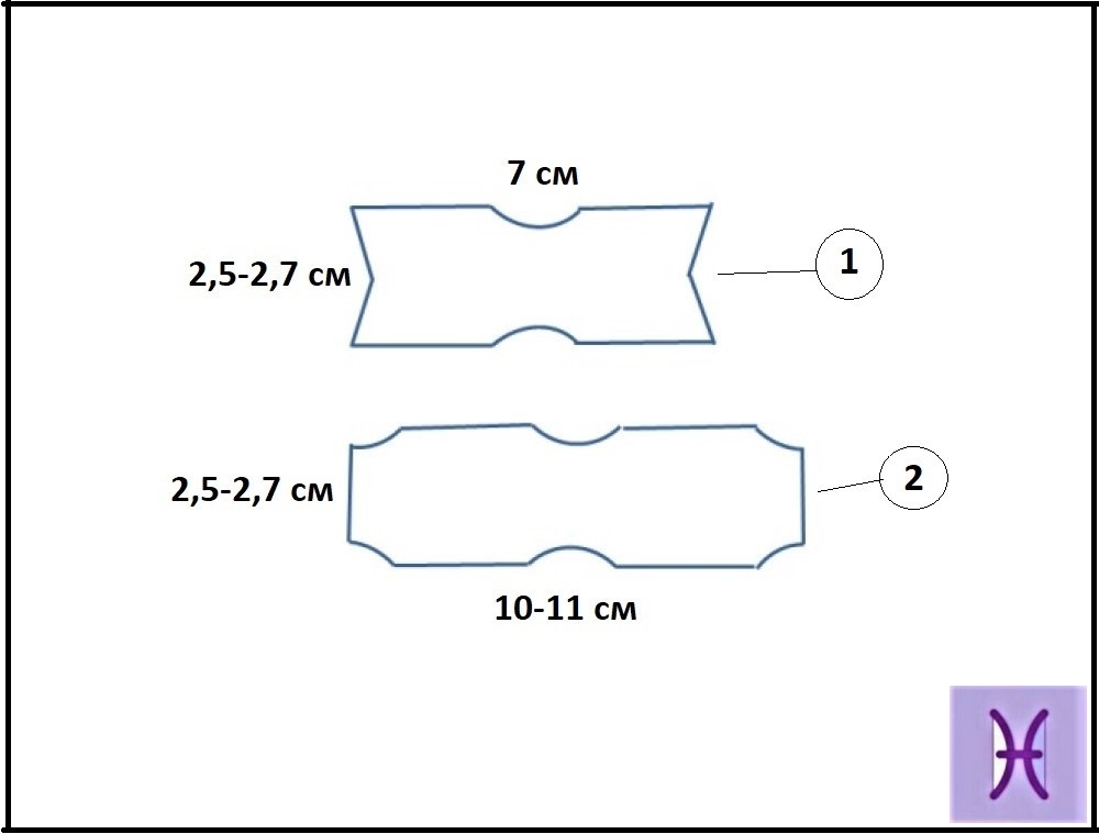 Кто-то скажет, что не любой человек может сделать заколку из кожи. Что нужно иметь кожу и т.д. и т.п. Поверьте вовсе нет. Вот например совсем скоро весна. У кого-то пришли в негодность сапоги. Не выбрасывайте сразу. Вырежьте пригодные для рукоделия кусочки. У кого-то сумочка уже приобрела непрезентабельный вид. Смело выбрасывайте, но прежде вырежьте пригодные для рукоделия кусочки. Мне скажут, сначала нужно новую сумку купить, а затем уж старую выбрасывать. Скажу по секрету, я также сама себе иногда говорю. Но, выбрасываю. Так новая сумка появится гораздо быстрее. У кого-то перчатки на выброс. Но, прежде... Да вы уже всё знаете. Остается купить только клей и основу для заколки. И освободить немного времени. На фото изображена примерная выкройка для кожаных деталей заколки. Размеры деталей можно изменить по своему желанию. Как делать: Из кожи вырезать обе детали. У детали номер 2 края подгибаем к центру снизу и приклеиваем. Снизу приклеиваем деталь номер 1. Склеенные детали приклеивае