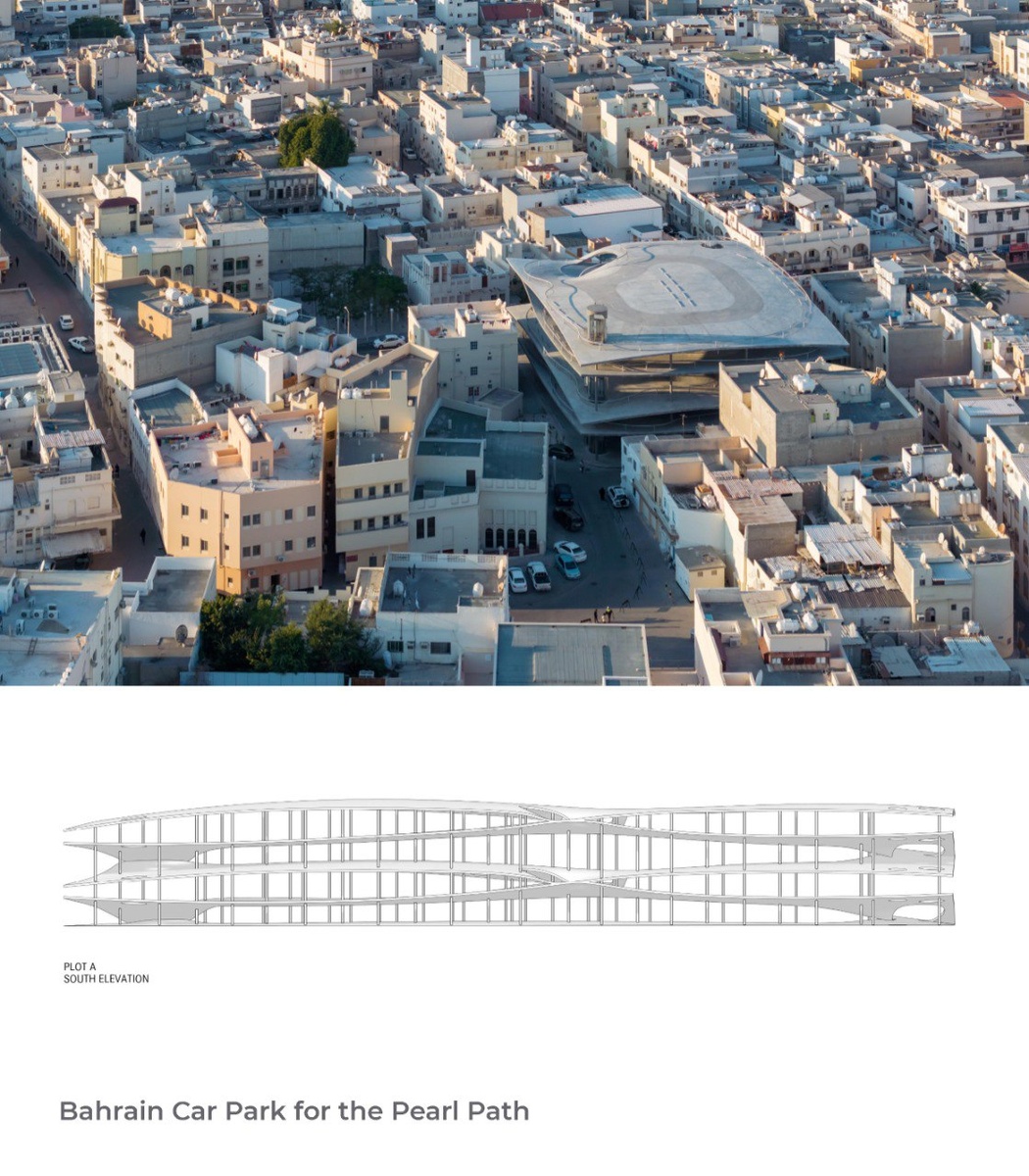 Большинство многоуровневых паркингов выглядят одинаково. Прямоугольная коробка с некоторым ритмом на фасаде (это если повезет), обозначение въезда и выезда. Также их обычно стараются увести подальше от главных фасадов и активных улиц. Утилитарная функция не должна портить образ города. Но может быть, паркинги тоже хотят быть красивыми. Посмотрим несколько примеров, которые осмысляют типовую функцию хранения автомобилей через контекст места: Bahrain Car Park for the Pearl Path по проекту Кристиана Кереза — хороший пример интеграции инфраструктуры в культурный контекст. Паркинг расположен вдоль маршрута Pearl Path в Мухарраке (объект ЮНЕСКО). За счет своего местоположения и открытого объема, он становится частью туристической инфраструктуры, элементом городского сценария. Не смотря на то, что само здание это монолитный бетон, оно выглядит проницаемым. Сквозные пространства обеспечивают естественную вентиляцию и визуальные связи с городом. Объект работает как фон для исторической среды и