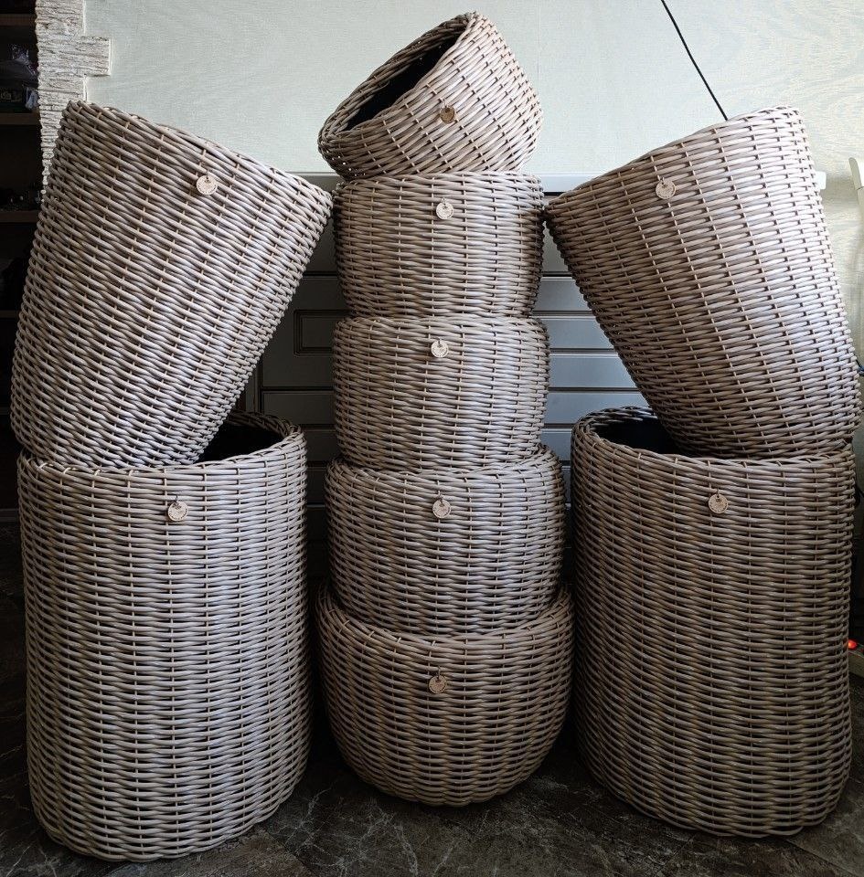 Кашпо из искусственного ротанга.
