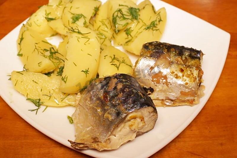 1. Выпотрошить рыбу, удалите головы, хвосты и плавники. Нарежьте рыбу на порционные куски. Приправьте. Заверните рыбу в двойной слой фольги.2. Картофель очистите и нарежьте дольками примерно на 6 частей каждый клубень. Сложите картошку в чашу мультиварки. Добавьте 0,33 ст.л. соли и залейте водой (1 л).3. Сверху поставьте корзинку для готовки на пару с рыбой, установите режим Пар на 30 минут, чтобы картошка тоже успела приготовиться.4. Достаньте рыбу. С картошки слейте воду, добавьте к картошке масло и мелко нарезанный укроп. Перемешайте.Все готово.Приятного аппетита .