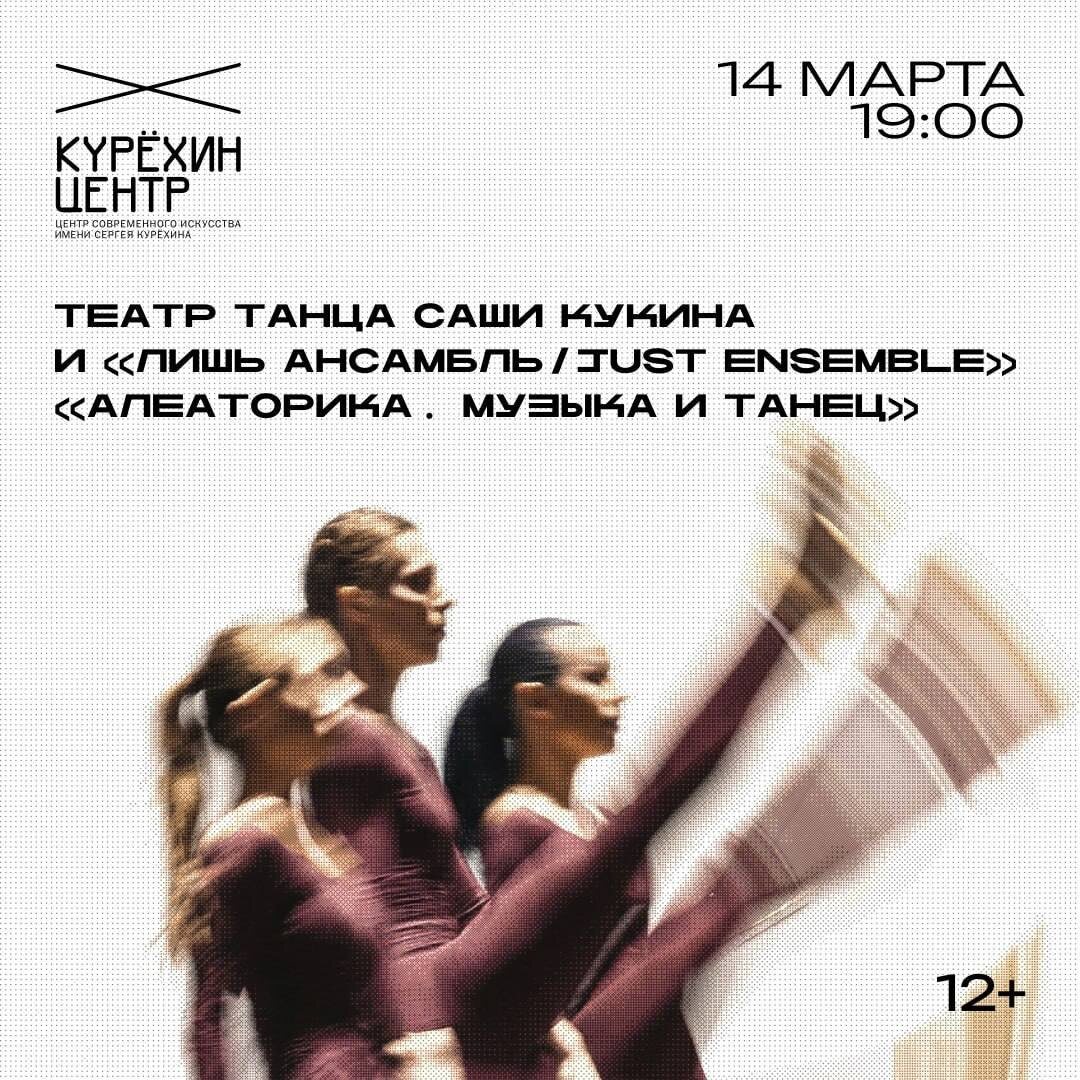 всех любителей танца на специальный показ Театра танца Саши Кукина «Алеаторика. Музыка и танец», проводимый в рамках юбилейного 35-летнего сезона труппы. скидочный промокод «ТАНЕЦ» в размере 70% стоимости от любого билета! Показ состоится 14 марта в Большом зале Центра Сергея Курехина. Вечер объединит современную хореографию и живое исполнение музыки ключевых композиторов XX века — Джона Кейджа, Мортона Фельдмана и Джорджа Крама. Хореография Саши Кукина встретится с экспериментальной партитурой, где звук, движение и случай становятся частью единого сценического действия. На сцене — танцовщицы Карина Гараева, Светлана Леничко, Полина Дубровкина и Рада Смирнова. Музыкальные произведения исполнят музыканты ЛИШЬ Ансамбля: Тимофей Матвеев, Павел Иванов, Алиса Фёдорова, Диана Аксиненко и Александра Листова. Начало в 19:00 Билеты → здесь