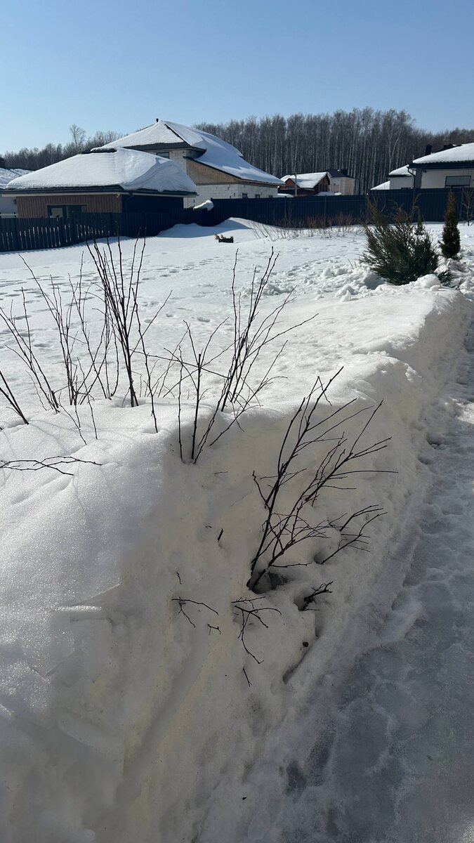 На первом фото - как сейчас. Снег тает, но посередине сугроба пару слоев льда, вода задерживается. Прорубать и ворошить его очень тяжело. Уже вижу, что пострадало, поломалось, но в основном только снег. На других фото - в эти же даты 23, 24 и 25 год. Напишите, как у вас? Выбирались уже на участки проведать растения?