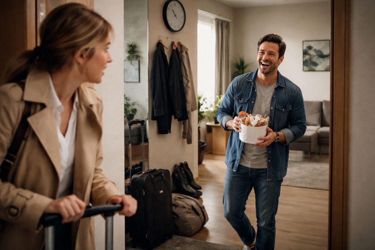 Спеша на рейс в командировку, Лена услышала знакомый смех, доносившийся из прихожей. Сердце екнуло — этот смех принадлежал мужу, который, по её сведениям, должен был быть у матери в деревне.