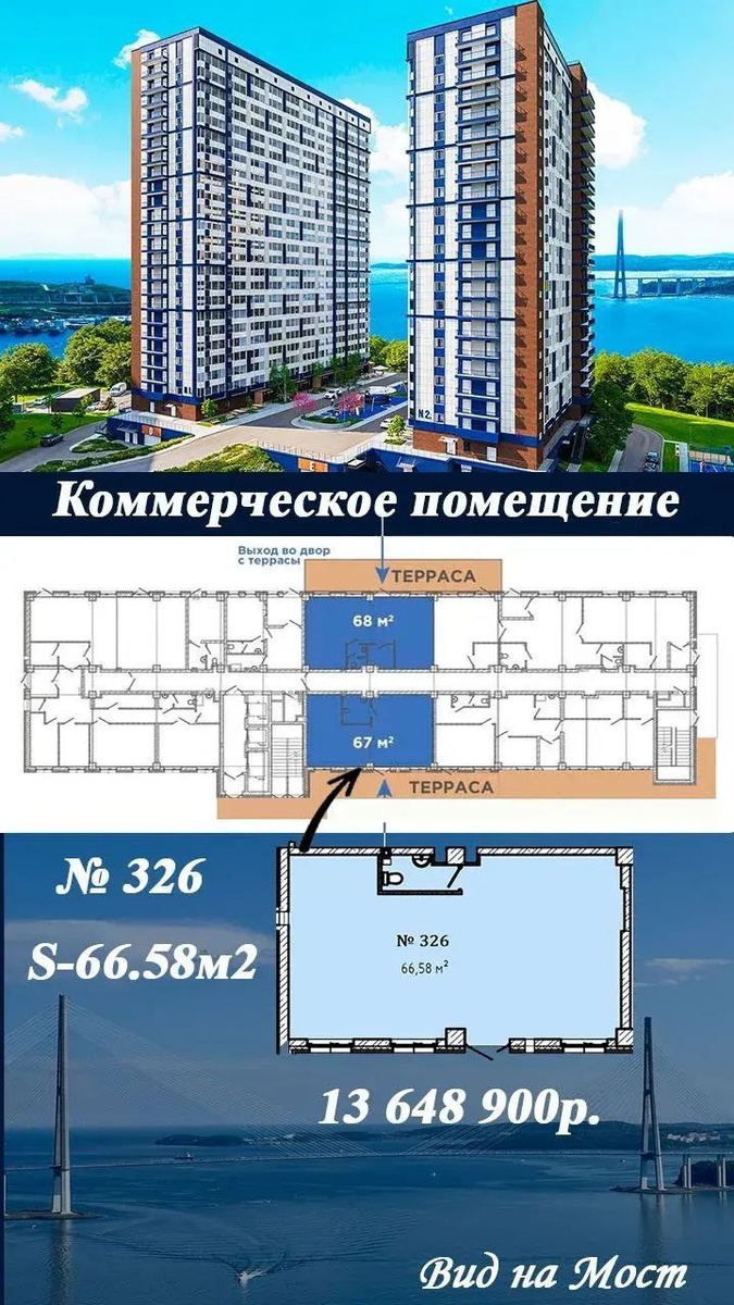 " 🏡 Коммерческое помещение с потрясающими панорамными видами на Мост Русский 🏡номер 326 Площадь - 66,58 кв.м 💰 Цена - 13 648 900 ✅ Виражное остекление ✅ Отдельный вход ✅ Отдельная усиленная вентиляция ✅ Возможность увеличения мощности по электричеству. 🚘 выход на готовой паркинг 🌅 Шикарный вид 🚪 Два Входа со стороны паркинга (по лестнице) 🚪 вход со стороны двора 🚪 доступ с подземного паркинга (лифты , лестница) Свяжитесь со мной👇 ☎️ ваш специалист по недвижимости 89147267601 Буду рада помочь выбрать оптимальный вариант и сопроводить вас на всех этапах сделки! ✨