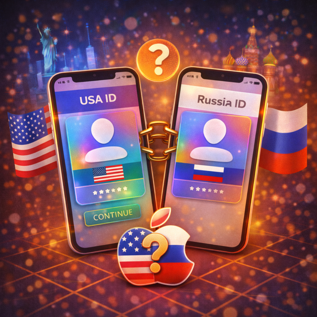 После ограничений последних лет многие владельцы iPhone начали использовать два аккаунта Apple ID: один — российский, второй — зарубежный. На первый взгляд это кажется сложным, но на практике такой сценарий довольно распространён. Пользователи просто разделяют задачи: один аккаунт используется для повседневной работы устройства, второй — для загрузки приложений или покупок в другом регионе. Разберёмся, как это работает на самом деле, какие есть нюансы и почему многие выбирают именно такой способ. Обычно схема выглядит так: Российский Apple ID Используется для: Зарубежный Apple ID Нужен для: То есть устройство фактически работает с двумя аккаунтами, но каждый выполняет свою задачу. Главный момент, который многие не знают: Apple позволяет использовать разные аккаунты для iCloud и App Store. Это значит, что: Благодаря этому можно пользоваться двумя аккаунтами без постоянного выхода из iCloud. Процесс довольно простой. В настройках iPhone: Настройки → Apple ID Здесь должен быть ваш основно