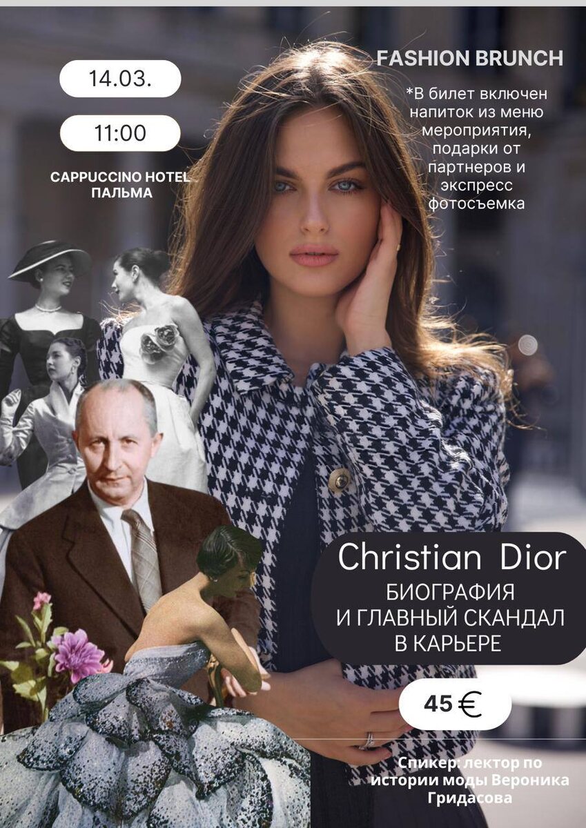 ! ✨ Знаем, как вы любите эстетичные и наполняющие бранчи, поэтому не можем не поделиться: лектор по истории моды Вероника приглашает нас на свою лекцию-бранч о легендарном Кристиане Диоре. Почему стоит пойти? Это не просто сухие факты, а глубокое погружение в мир кутюрье: от его детства до того самого «главного скандала», который едва не разрушил его империю. 🥐☕️ Что в программе: • 2 часа захватывающей лекции в атмосфере Cappuccino Hotel. • Вкусный кофе на ваш выбор и приятное общение. • Подарки от партнеров (приятный бонус!). • И самое классное — экспресс-фотосессия для каждой гостьи от профессионального фотографа. 🗓 Когда: 14.03 в 11:00 📍 Где: Cappuccino Hotel (центр города) 💳 Стоимость: 45 € Проведите это утро красиво в компании единомышленников. Количество мест ограничено, так что советуем не затягивать с записью! 📩 Для записи пишите: +380639344469 или в комментарии.