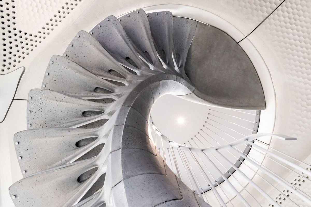 Представьте себе элегантную винтовую лестницу, каждая ступень которой создана с невероятной точностью и прочностью благодаря методу предварительного напряжения и сверхпрочному бетону с армированными волокнами. Именно такую революционную технологию применили инженеры кафедры цифровых строительных технологий швейцарского университета ETH Zürich вместе с архитекторами ROK Architekten. Каждая деталь этой уникальной лестницы была изготовлена на 3D-принтере, что позволило добиться поразительной легкости и прочности конструкции. Но главное достижение – использование инновационных материалов и методов сборки, благодаря которым конструкция легко демонтируется и перерабатывается, соответствуя принципам устойчивого развития и круговой экономики. Этот удивительный объект, установленный в экспериментальном жилом комплексе Empa NEST, показывает огромные перспективы аддитивных технологий в строительстве.