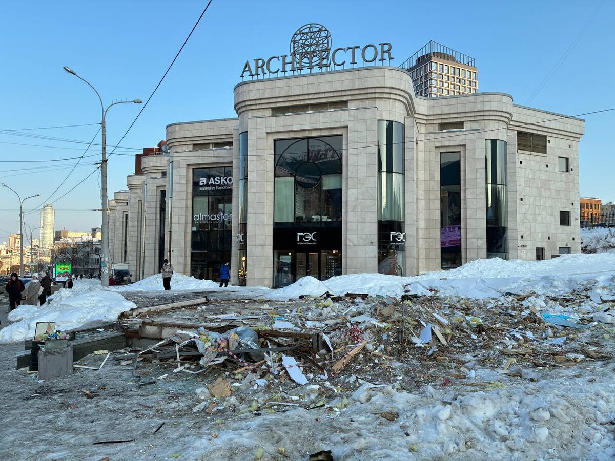 В центре продолжают сносить старое-ненужное. Ну и оставлять после этого кучу мусора. Возможно надеются, что вместе с растаявшим снегом и это смоет. Возможно летом закатают это место в асфальт, как это практиковали в прошлом сезоне на Ленина. @Квартал Миллионеров