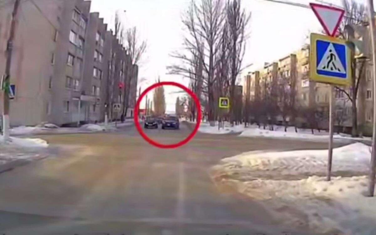 Лихач на Toyota проскочил перекресток на красный и по встречке в воронежских Лисках