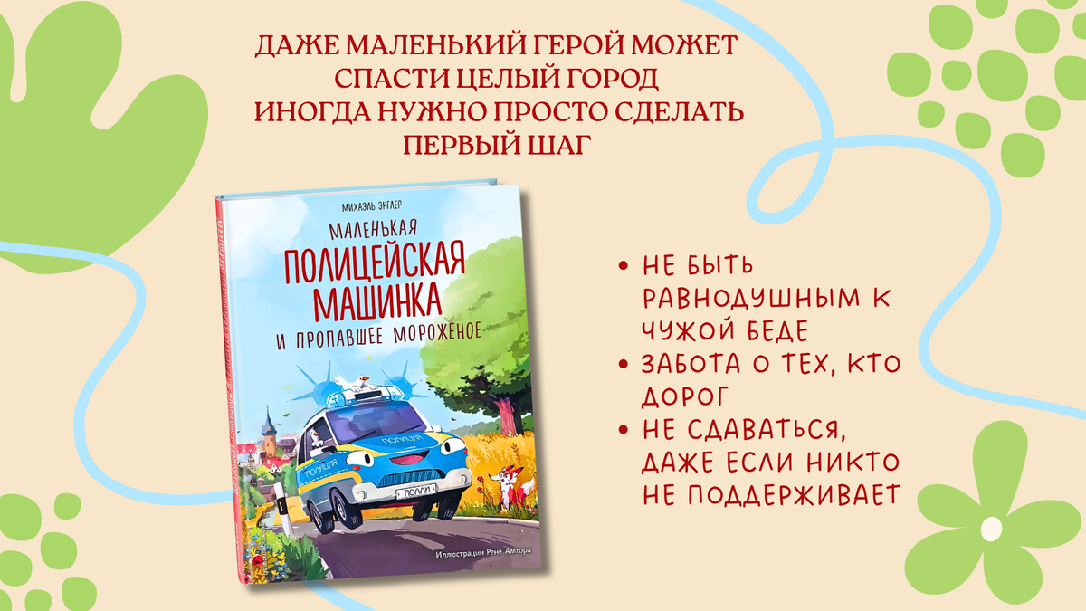 Когда мы выбираем книги для самых маленьких, хочется, чтобы они были не просто красивыми и интересными. Важно, чтобы они несли что-то важное: учили добру, поддерживали в трудную минуту, показывали, что даже маленький может быть сильным. Серия книг «Сказки в картинках для малышей» — именно такие истории. Это буквально уроки жизни, упакованные в яркие иллюстрации и захватывающие приключения. Собрали для вас топ добрых книг, которые обязательно стоит прочитать с малышом В городке, где полицейская машинка Полли следит за порядком, всегда царят радость и уют. Но однажды случается настоящая беда — пропадает всеми любимый фургончик с мороженым Эмилио. Старшие коллеги Полли не спешат начинать поиски. Но Полли не понимает их. Ведь дети остались без радости! И маленькая полицейская машинка отправляется на поиски в одиночку! Чему учит эта история: Маленькую пожарную машинку Фипси никто не воспринимает всерьёз. Её колёса не едут достаточно быстро, лестница слишком короткая, да и воды в баке не все
