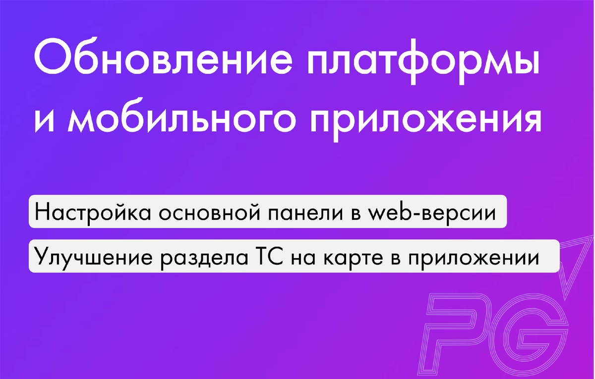 1. Появилась возможность настроить основную панель в web-версии 🧑💻 ✔️ Теперь можно перенести вверх или вниз кнопки сервисов или отключить их отображение (по умолчанию, по основной ссылке на платформу будет открываться сервис, расположенный сверху). 2. Улучшили раздел ТС на карте в приложении 📱 🔹 Добавили на треке параметры: Пробег, км (CAN), Расход ДТ, Расход газа, Моточасы, Расход ДТ, л/100 км, расход газа м3/100 км 🔹 Реализовали возможность на треке карт выбирать период, а не только 1 день 🔹 Разместили регистрационный номер и модель над машинами, в том числе над стрелкой в режиме трека 🔹 Сделали треки более различимыми за счет черных контуров 🔹 Дополнили все карты возможностью максимального приближения Подробнее об обновлении в нашем телеграм-канале