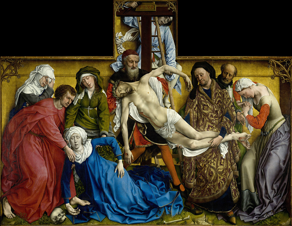 Рогир ван дер Вейден (ок. 1399–1464) самый влиятельный нидерландский художник середины XV века. Он родился в Турне, на территории современной Бельгии. После окончания ученичества поселился в Брюсселе и около 1436 года стал городским художником. Он быстро завоевал международную известность и стал получать заказы от некоторых членов Бургундского двора, включая известного коллекционера произведений искусства Филиппа Доброго. Его религиозные картины отражают силу личных убеждений художника. Они оказали глубокое влияние на развитие искусства во всей Европе.