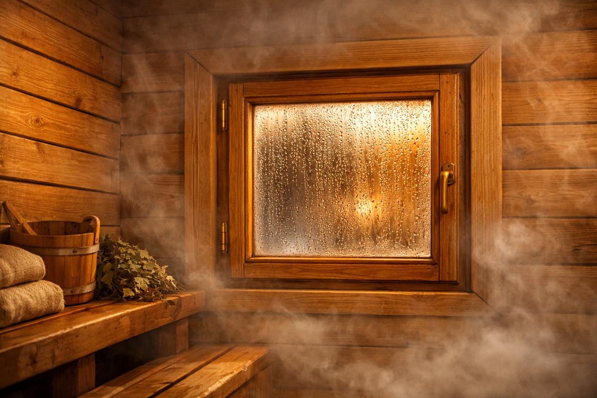 Парилка — это помещение с экстремальными условиями: высокая температура, повышенная влажность и резкие перепады микроклимата. Поэтому при строительстве или обустройстве бани многие задаются вопросом: можно ли устанавливать ПВХ-окно в парилке или лучше выбрать деревянное? Разберёмся в этом подробнее. В русской бане температура в парилке обычно достигает 60–90 °C, а влажность может подниматься до 70–90 %. В таких условиях материалы испытывают серьёзные нагрузки: Поэтому все элементы помещения, включая окна, должны быть устойчивыми к влаге и высокой температуре, а также безопасными для здоровья. Теоретически установить ПВХ-окно в парилке возможно, однако специалисты не рекомендуют делать это по нескольким причинам. 1. Ограниченная термостойкость ПВХ Пластиковый профиль рассчитан на эксплуатацию при умеренных температурах. При сильном нагреве материал может: В условиях парилки это происходит значительно быстрее, чем в обычных помещениях. 2. Экологическая безопасность При