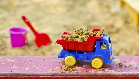 Взяв одну из формочек, он набрал в машинку песка, подвёз поближе к Славику и перевернул песок.