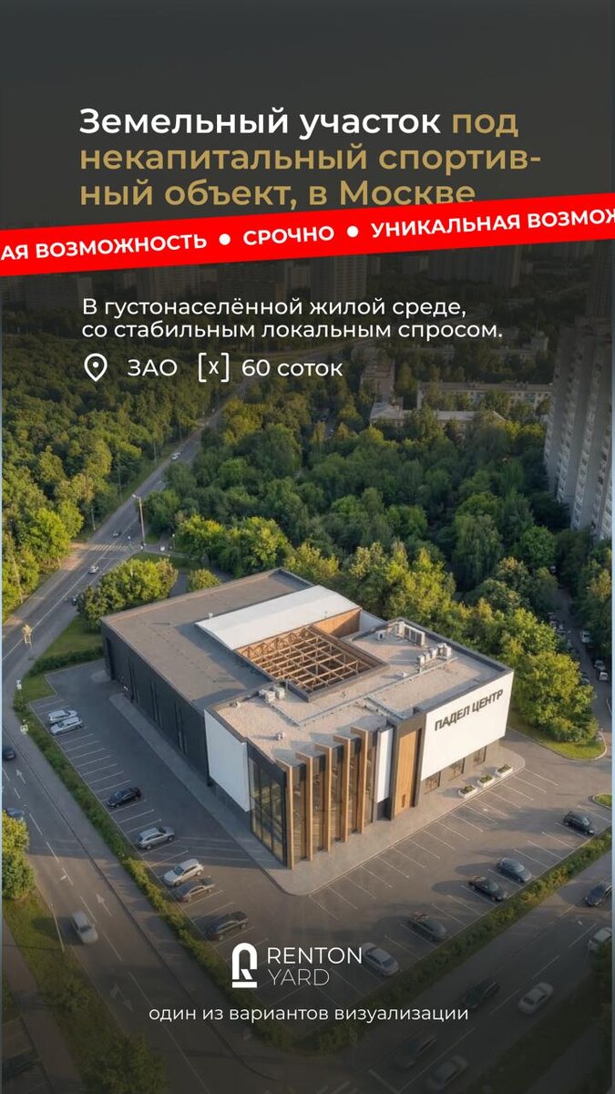 Документы на руки через 45 дней. Если вы читаете этот пост, значит участок ещё в продаже и у вас есть возможность подать на него заявку. ☝️Коллеги, это действительно редкая возможность быстро зайти в спортивный проект Участок находится в ЗАО Москвы, в плотной жилой среде, где уже есть понятная аудитория под спортивную инфраструктуру. Общая площадь участка: 60 соток, пятно размещения: 37 соток. По объекту уже проведена подготовительная работа, поэтому здесь можно двигаться в существенно более короткие сроки, чем обычно бывает по таким площадкам. ⬇️⬇️⬇️ Для оперативной подачи заявки пишите сюда ————————— Renton Yard Коммерческий девелопмент в Москве Земля / документы / согласования / техприс / стройка / ввод