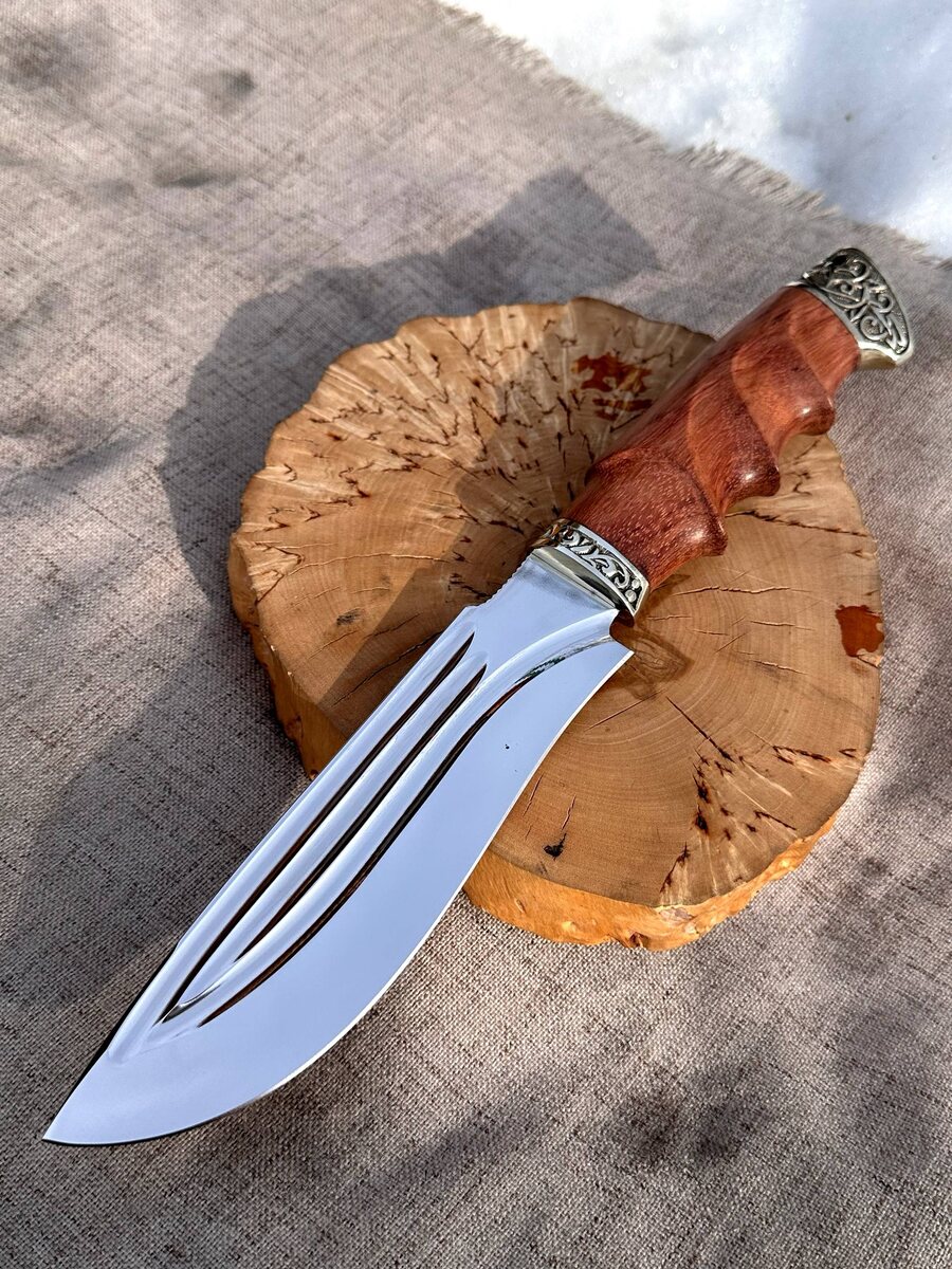 Сделан для настоящей работы: Этот нож справится с любыми испытаниями — строгание, рубка, колка. Клинок из легендарной стали Х12МФ с криообработкой — сочетание прочности и износостойкости. Фигурные долы не только украшают, но и увеличивают функциональность. Рукоять — анатомическая, из мельхиора и резного бубинги. Лежит в руке надёжно и удобно даже при длительной работе. Твердость 61–62 HRC — нож легко режет и долго держит заточку. Заточен в бритву 👌 🎁 Цена: 25 756 ₽ 🔥 Со скидкой сейчас: 13 320 ₽ В комплекте — крепкие ножны из натуральной кожи. Можно заказать формованные ножны (+8000 ₽). 📲 Заказать сейчас: Пишите 👉 [@Nazarklinokbot](https://t.me/Nazarklinokbot) или WhatsApp/Viber: +7 910 134-38-31 #ножкузница #ручнаяработа #сибиряк #х12мф #подарокохотнику #кузницаназарова #туризм #охота #рыбалка