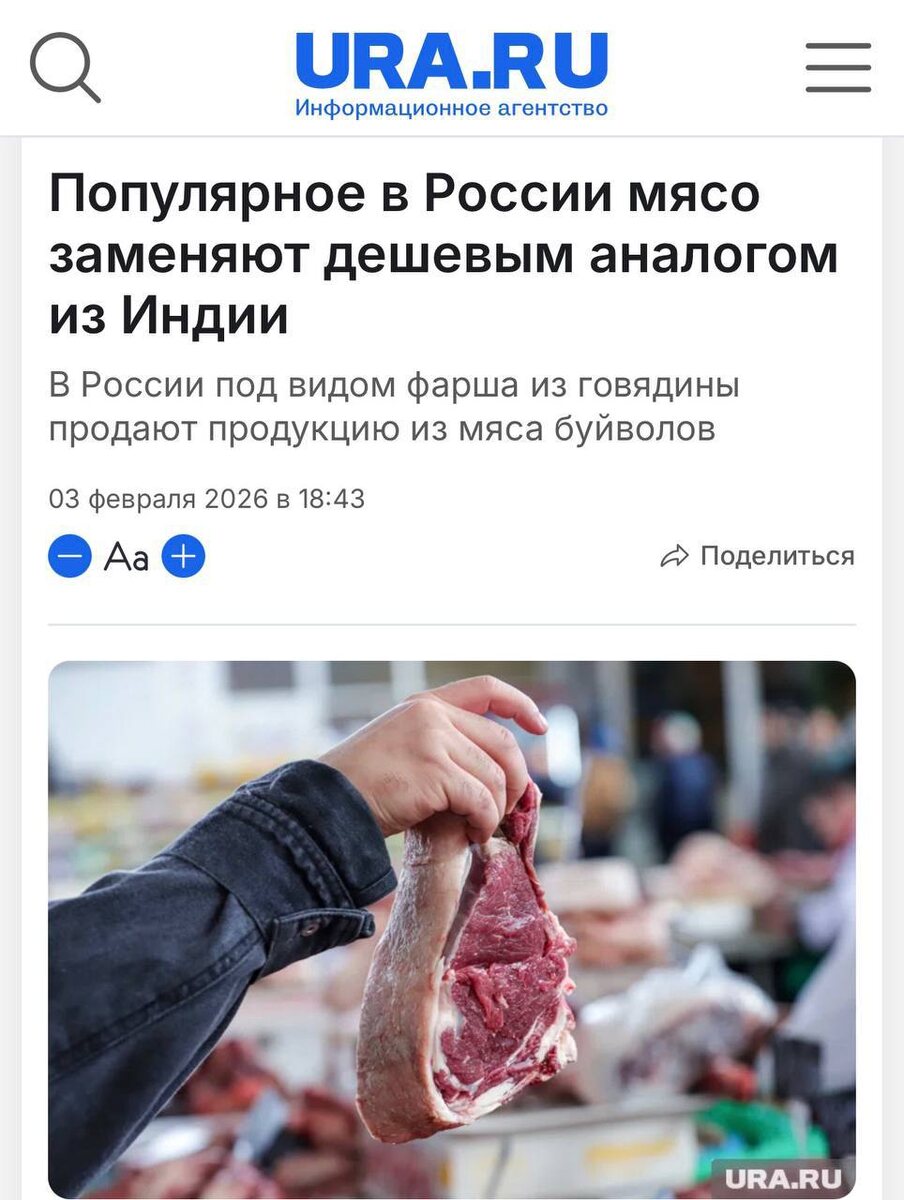 🥩 На фоне массового уничтожения скота Россию заваливают мясом буйволов из Индии