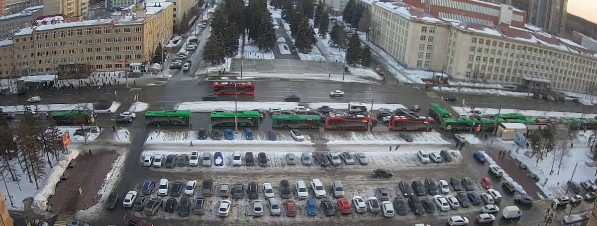 Если вы потеряли свой автобус или троллейбус где-то в центре, скорее всего, он стоит возле ЮУрГУ Там — сплошная зелено-красная пробка. Здесь же водители видели, как убирали снежные кучи с проспекта Ленина. Ну, или они уже сами начали таять, прямо на дорогу. 📸: Камера «Интерсвязи»; 2ГИС