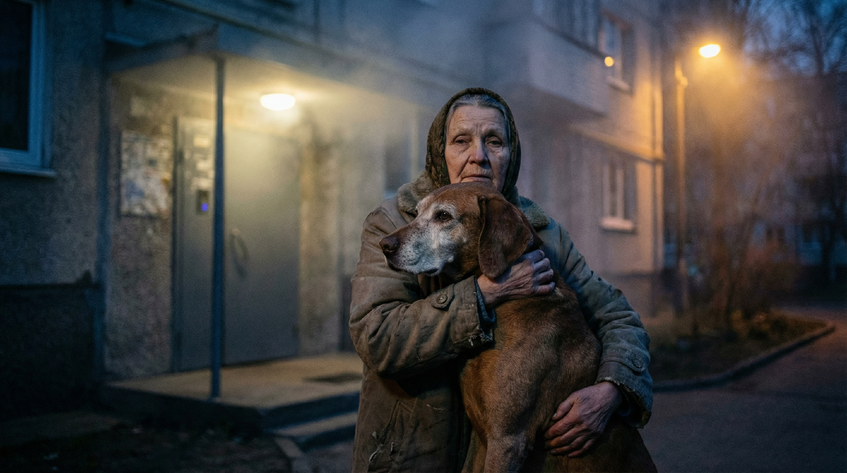 На улице уже стояли люди в пальто поверх пижам, кто-то плакал, кто-то говорил в трубку, кто-то просто смотрел вверх на окна. Воздух был холодный, апрельский, пах сыростью и гарью. Я стояла в стороне, держала Рыжика, он был тяжёлый и тёплый у меня в руках.