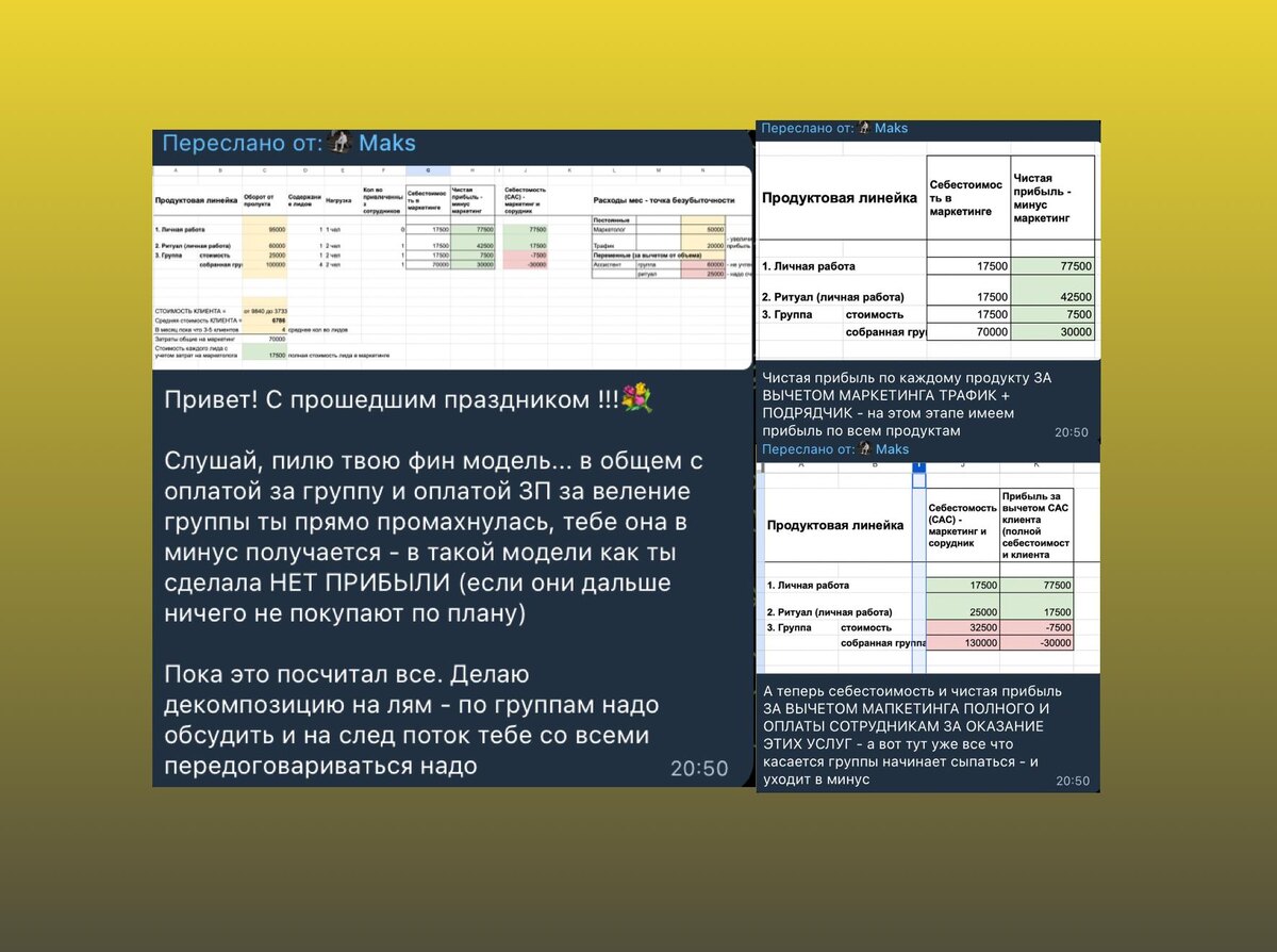 ...и прочие вещи, которые большинство предпринимателей просто игнорирует. Слышали когда то фразу "нищета - это от слова не считать" ? В бизнесе она тоже работает. Золотое правило: сначала посчитай, а потом запускай. Поэтому я обычно скептически отношусь к формату "а давайте запилим быстренько курс и будем продавать" или "а давайте сделаем новый мини продукт и еще заработаем" - для меня это звучит так: А давайте всю систему которая несла прибыль сломаем, перенаправим все ресурсы и фокус внимания на большой "хз" фактор, сольем бюджеты, за все это заплатим и уйдем в минус.... Как бы абсурдно это не звучало, но люди так делают часто - НЕ НАДО ТАК. Сначала надо по максимуму отработать и промасштабировать то, что здесь и сейчас, может нести постоянный поток денег, а потом уже считать - считать и еще раз считать остальные варианты. Живой пример (в скринах к посту), у клиента есть трафик, он конвертируется в заявки в формате "предостаточно" (потому что моя команда занимается генерацией