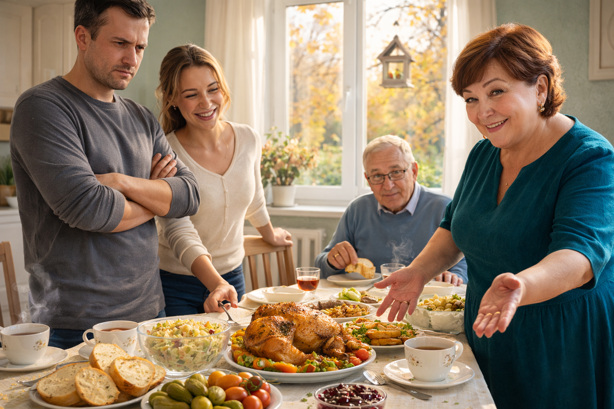 — Садитесь, дорогие! — скомандовала Валентина Петровна, снимая фартук. — Курочка сегодня — пальчики оближешь.