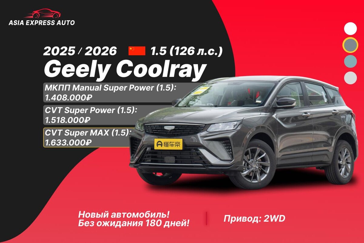 !🆕 🚀Быстрая доставка в РФ без ожидания!🚀 🔖Стоимость автомобиля рассчитана по курсу на сегодняшнее число до нашей стоянки в г. Благовещенск или Владивосток, с полным пакетом документов для постановки на учет! 🔖 Отправка в любой город! GEELY COOLRAY новый! ▫️Год: 2025/2026 ▫️Двигатель: 1.5 (126 л.с.) ▫️Привод: 2WD ▫️Новый автомобиль!💎 💰Стоимость под ключ в РФ: 🔹5МКПП Manual Super Power (Нажмите на ссылку, чтобы увидеть комплектацию полностью): 1.408.000₽ 🔹CVT Super Power (Нажмите на ссылку, чтобы увидеть комплектацию полностью): 1.518.000₽ 🔹CVT Super MAX (Нажмите на ссылку, чтобы увидеть комплектацию полностью): 1.633.000₽ 💸По курсу юаня 12 Стоимость может измениться из-за цвета! Если вас интересуют другие автомобили, напишите в комментариях — наши менеджеры с удовольствием рассчитают цену под ключ в РФ. ✍️ 🔴Смотреть адреса офисов 🔴Владимир Благовещенск #Китай #Новый
