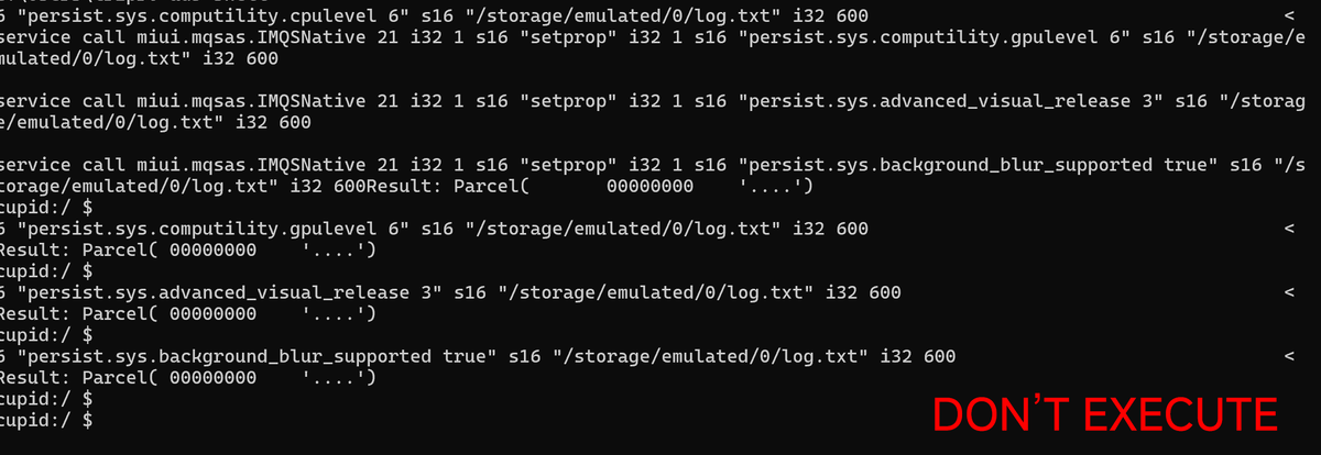 - Через ADB отправляется специальная команда, направленная на сервис miui.mqsas.IMQSNative
