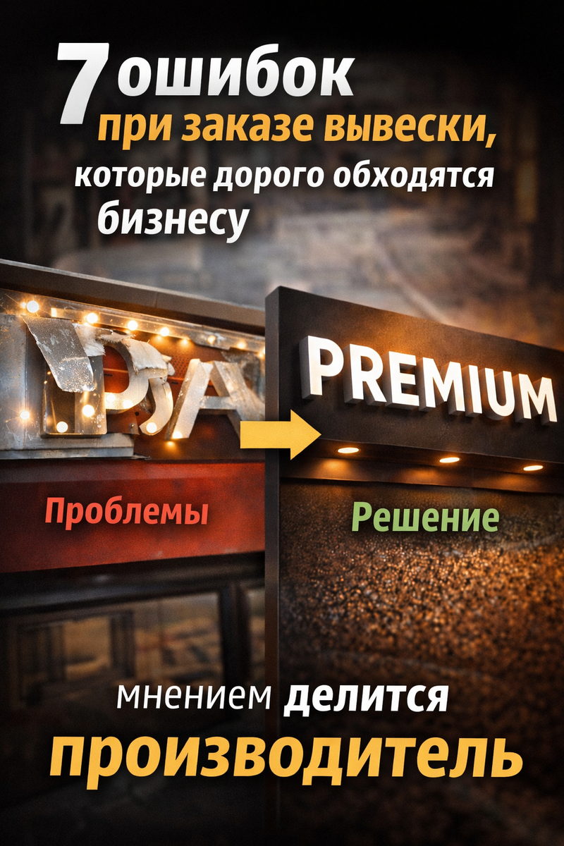 Но есть одна проблема: по оценкам производителей, более 60–70% вывесок делаются с ошибками — от неправильных материалов до плохого монтажа.