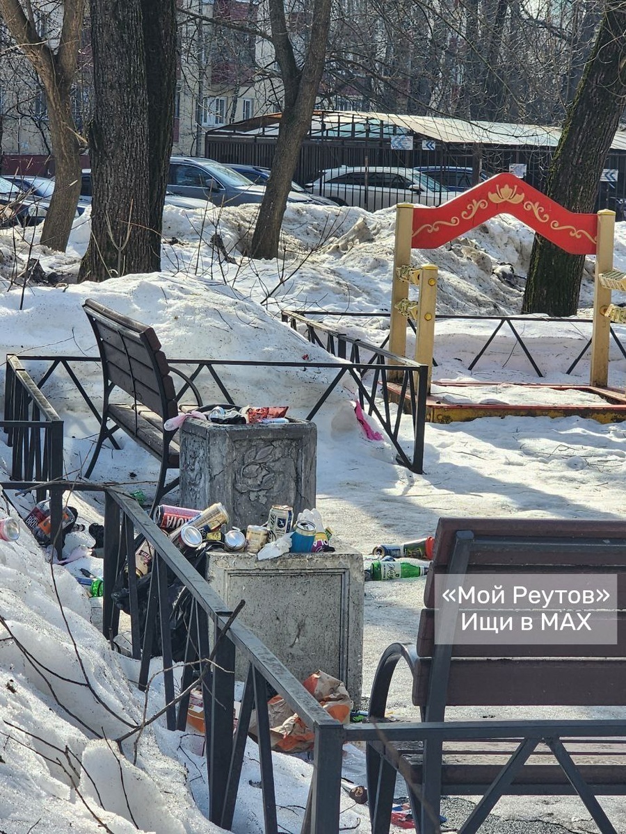 Площадка напротив дома 19А ул. Победы. Контейнеры мусорные битком, на площадке помойка. никто не убирает, гулять с детьми невозможно! Уберите снег и мусор!!! #отподписчиков «Мой Реутов» в MAX: https://max.ru/reutov_today