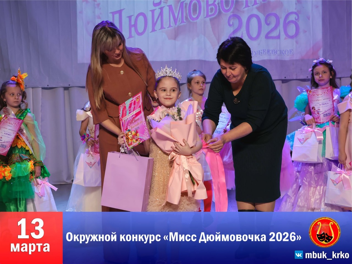 🌺🤩 💐👑 Сцена сельского Дома культуры «ЛУЧ» превратилась в настоящую сказочную страну. Здесь состоялся ежегодный окружной детский конкурс «Мисс Дюймовочка – 2026», объединивший самых талантливых, смелых и очаровательных юных жительниц Кочубеевского округа. 🌸🩶 Этот конкурс давно стал доброй традицией, символизирующей преемственность поколений и торжество детского творчества. В Год единства народов России такие мероприятия обретают особый смысл, за кулисами и в зрительном зале царила атмосфера искренней дружбы и взаимной поддержки. 🎁🎈 Жюри предстоял непростой выбор, ведь каждая конкурсантка — это уникальный талант и маленькая личность. В итоге все участницы стали победителями в различных номинациях, отмечены дипломами и памятными подарками. 👑🩷 Главный титул «Мисс Дюймовочка – 2026» завоевала Анастасия Богатырева - школа 4 с. Кочубеевское. 💻🤩 Важной частью конкурса стало народное голосование на сайте районного Дворца культуры. По его итогам обладательницей титула «Мисс МЕДИ