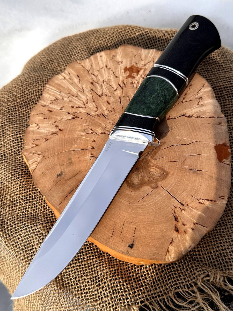 ! 🔪 Сталь КН-01 с криообработкой — прочная на излом, долго держит заточку, обеспечивает агрессивный рез. 🔝 Твердость клинка — 70 HRC: идеален для сложнейших задач на охоте, рыбалке или в походе. 💪 Спуски от середины клинка делают нож устойчивым к боковым нагрузкам — надежность даже при силовой работе. Рукояти: Рукоять — стабилизированная карельская береза зеленая и черный граб: тепло в руке и приятный тактильный эффект. Все рукояти — анатомические, удобно ложатся в ладонь. ✂️ Заточка — "в бритву": готовы к работе сразу из коробки! В комплекте — ножны из натуральной кожи. Есть вариант формованных ножен (+8000 руб.). 💰 Цена за нож — 18.600 руб. Подходит для: - Охотников, рыбаков, туристов - Подарка мужчине, который ценит настоящий инструмент 📲 Для заказа: Telegram: [@Nazarklinokbot](https://t.me/Nazarklinokbot) Телефон: +7 (910) 134-38-31 🔗 Подробнее — [nazarklinok.ru](https://nazarklinok.ru) #кузницаназарова #авторскийнож #ручнаяработа #стальКН01 #подарокмужчине #охота #рыбалк