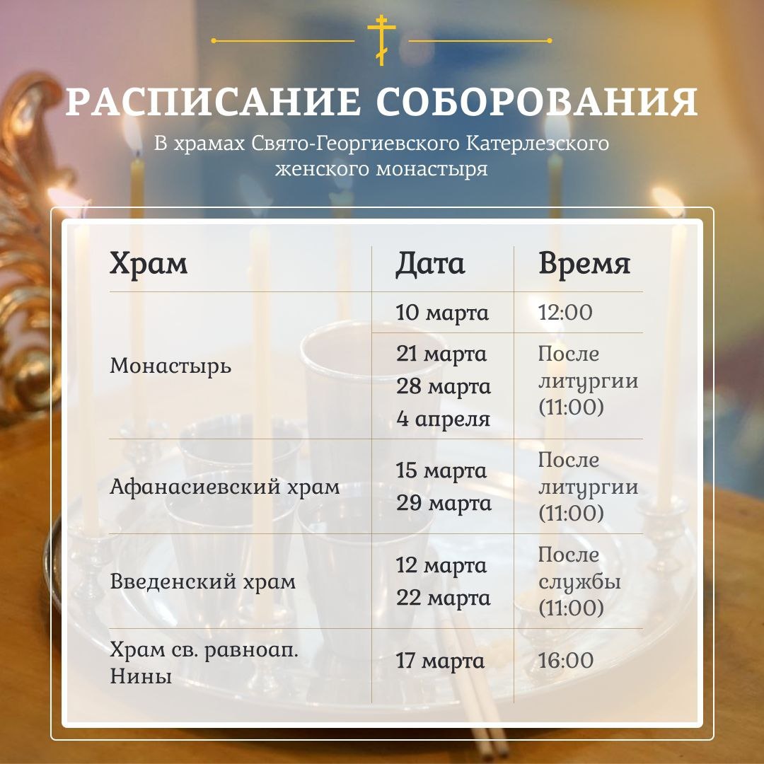 Или как правильно оно называется - Таинство Елеосвящения. Что такое Соборование? Соборование - это одно из главных Таинств церкви. Человек соборуется во исцеление недугов телесных и душевных. Соборуют также людей перед операцией, во время тяжёлой болезни и на одре лежащих. Когда происходит Соборование? В назначенный день, заранее записавши имена в церковной лавке, желательно исповедавшись, люди приходят в храм. Время и дату устанавливает священник. Как происходит Таинство? Священник читает особые молитвы, Апостол и Евангелие, после чего крестообразно помазывает человеку лоб, щеки, губы, руки и т.д., освященным елеем. И так происходит семь раз. Что нужно для этого Таинства? Желательно надеть одежду, которая не будет перекрывать шею, чтобы был свободный доступ для помазания. Также стоит взять с собой чистые платочки и масло в небольшой ёмкости. Ну и молитвенный настрой конечно же. Что делать с елеем после Таинства? Масло можно употреблять в пищу, а также помолившись наносить крест