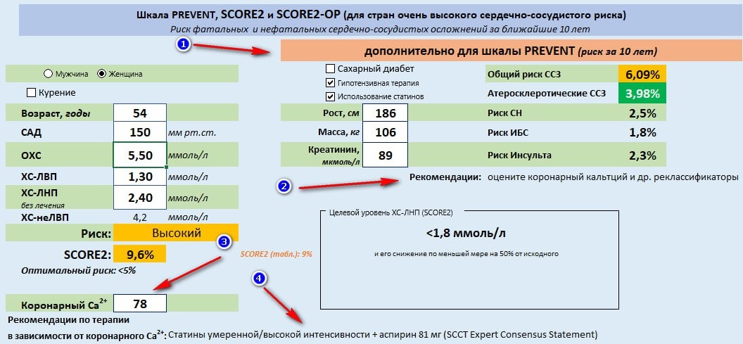 ! 🙌 Доселе мы риск сердечный по одной лишь SCORE2 гадали, аки на кофейной гуще. Ныне же явился PREVENT — и собрали они супер-комбайн, какого свет не видывал! 😲 Всё учли: и рост (186 см — яко колокольня), и массу (106 кг — аки мешок с репою), и давление 150 — ох, тяжко! И выдали цифру 9,6%... Но есть у нас ныне реклассификатор чудный — кальций коронарный! 🦴 Аще накопилось 78 единиц — прими статины умеренные да аспирин 81 мг, яко три авторитета (AHA, ESC и SCCT) повелевают. Цель же одна: ХС-ЛНП менее 1,8 ммоль/л, дабы спастись! 📉 А сыскать сие чудо во всемирной паутине можно. И ежели кто возжелает отблагодарить создателей — не требуют они злата-серебра, а токмо чашку кофия, и то с миром в душе, а не в ущерб семейному бюджету. ☕️🙏 Бегите мерить кальций, да не приключится удар раньше Страшного суда! Аминь. 😂🙏
